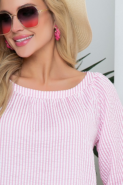 Блузка свободного силуэта из комфортной хлопковой ткани в полоску.