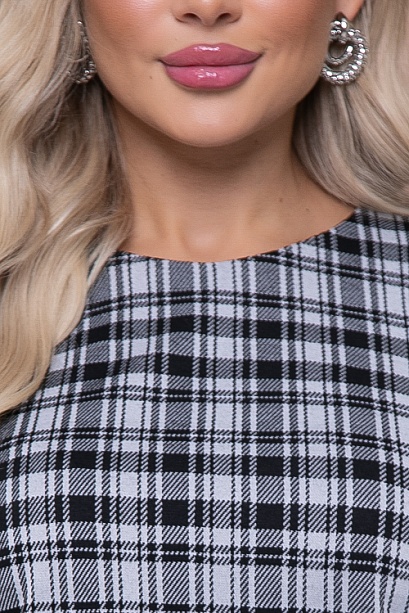 Комбинированная блузка из жаккардового трикотажного полотна в клетку  и белого текстильного полотна.Сочетание тканей создают имитацию жилета с блузкой.В боковых швах разрезы.В комплекте пояс.