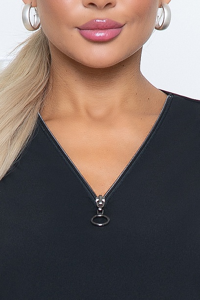 * Блузка из текстильного полотна свободного силуэта с декоративной отделкой по горловине.