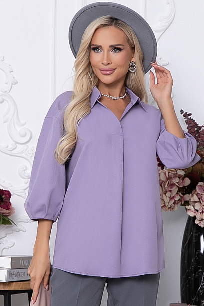 Блузка из плотного дышащего хлопка свободного силуэта.Воротник отложной на стойке.Рукав свободный с мягкими защипами.