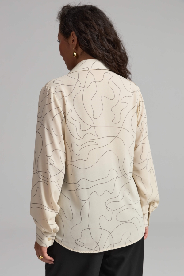 Блуза из полупрозрачного креп-шифона с втачным рукавом и с романтичным воланом.