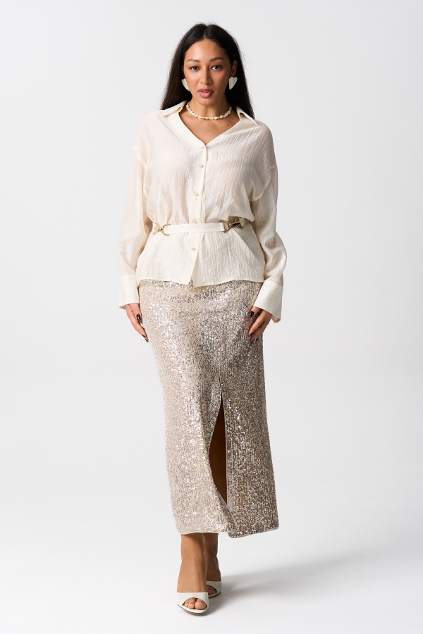 Блуза-рубашка из креш-вискозы с ацентным поясом.