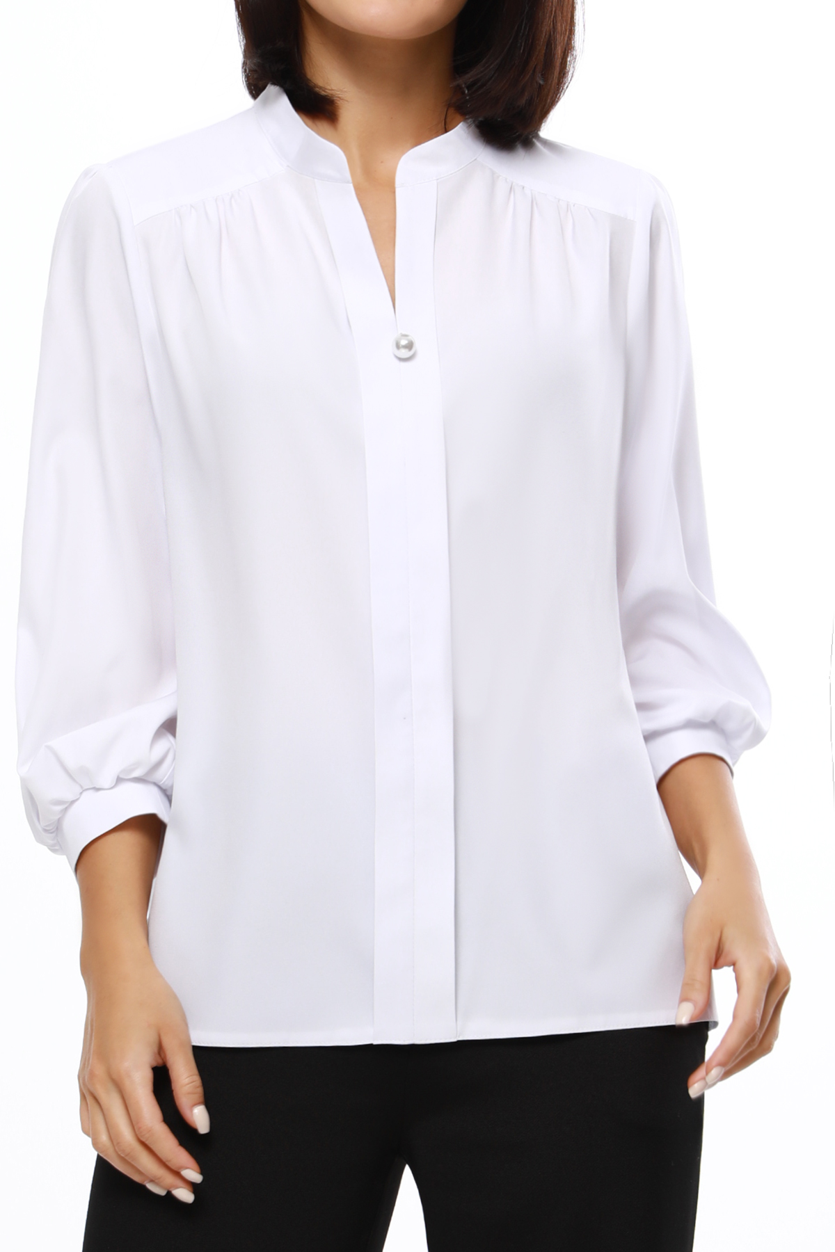 Женственная блузка на каждый день. Планки, имитирующие застежку, визуально делят фигуру и тем самым стройнят. Укороченный рукав с манжетом достаточно пышный, чтобы производить впечатление. Лучше всего будут смотреться в сочетании с юбками, но также можно носить ее навыпуск с брюками, а также длина позволяет гармонично дополнить ее поясом.
