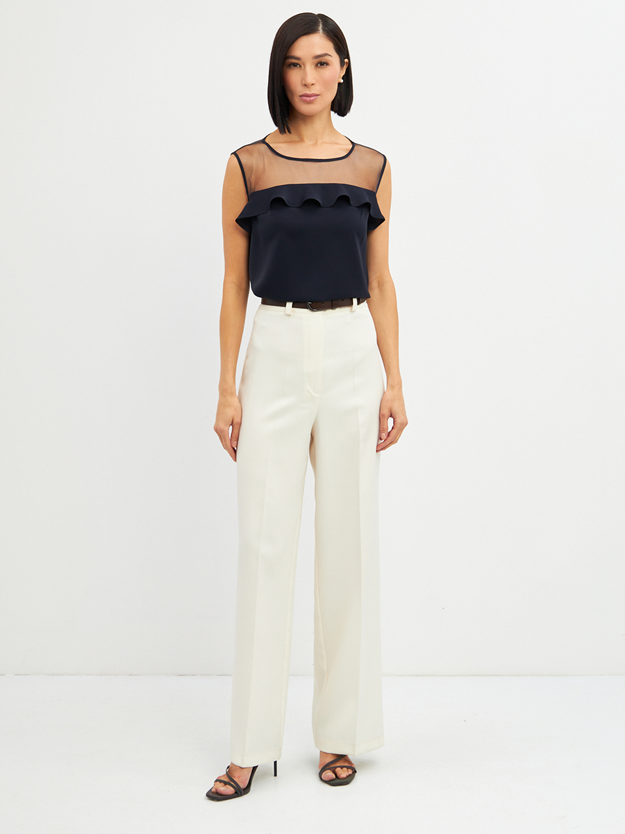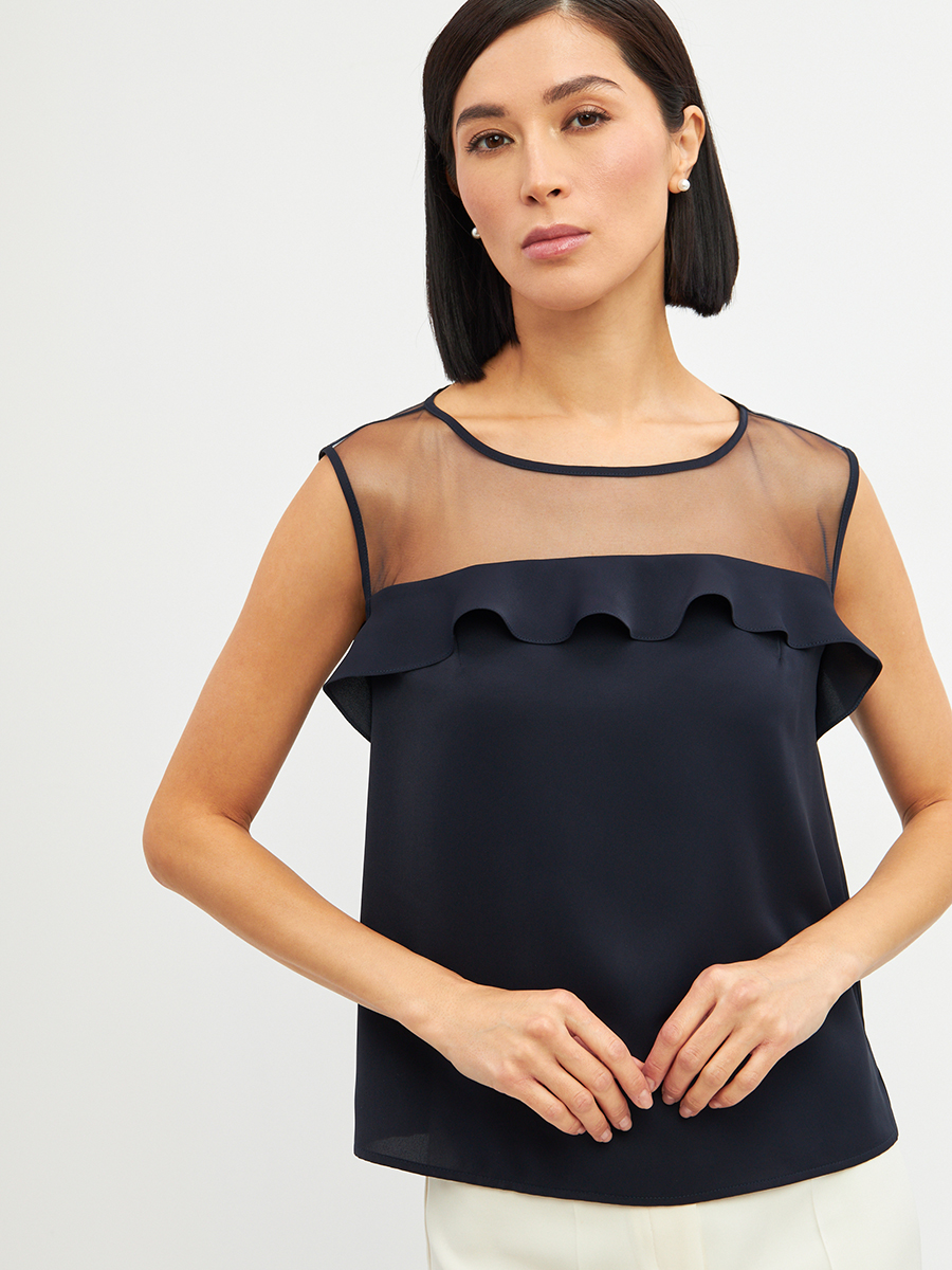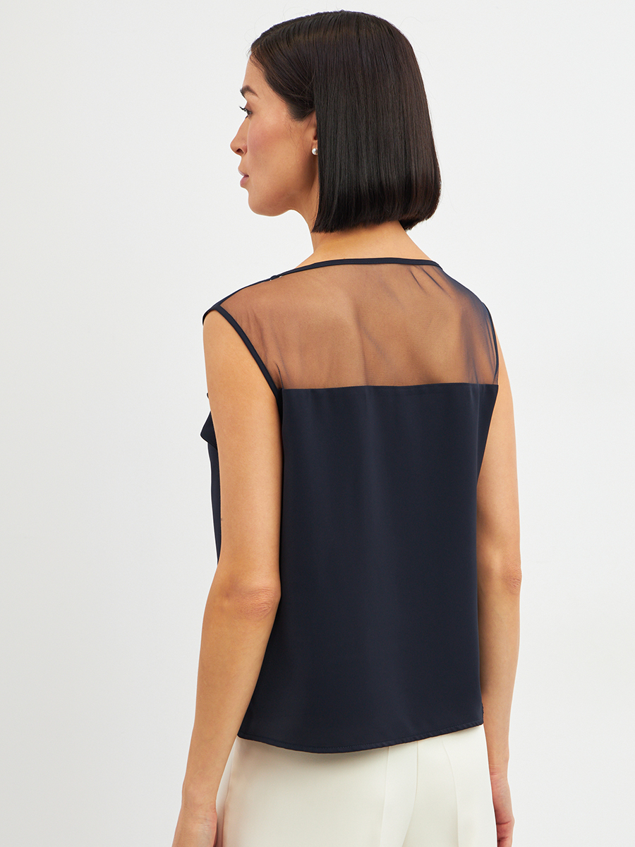 Блузка без рукавов с сеткой и воланом OD-992-2 т. синий