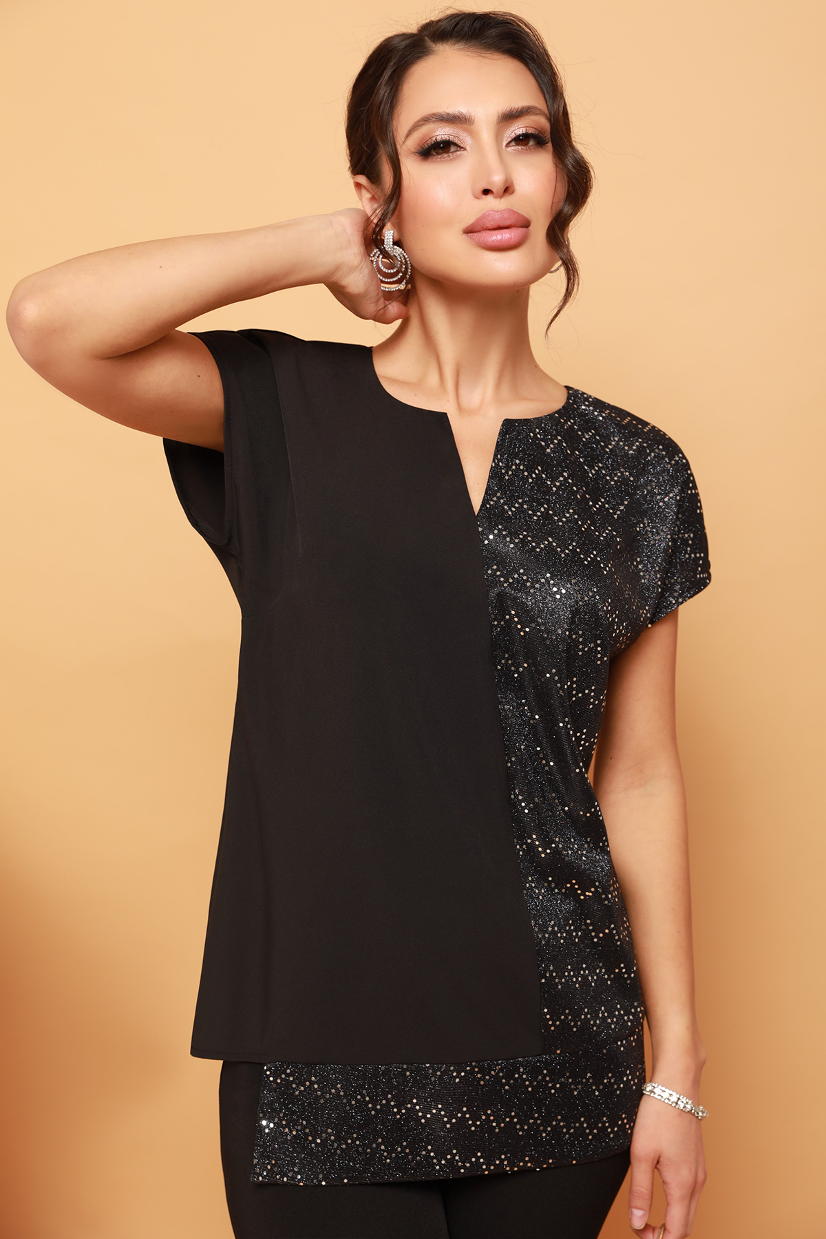 Асимметричная трикотажная блузка с блестками — одновременно элегантный и нарядный вариант, который преобразит любой образ. Прямой фасон придает модели легкость, а фигурный вырез горловины смотрится утонченно и визуально удлиняет шею. Асимметричный низ превращает блузку в настоящий хит сезона, ведь такой крой стал одним из трендов зимы-2024 и не намерен сдавать позиции. Контраст однотонной ткани и мерцающих блесток становится еще одной стильной изюминкой модели. Роскошная блузка будет идеальным выбором для праздничных мероприятий, вечерних выходов в свет, свиданий и особых дней на работе. Ткань с эффектным блеском украсит не хуже драгоценных камней и позволит каждой женщине почувствовать себя неотразимой. Чтобы блузка не деформировалась, рекомендуется стирать ее отдельно от других вещей в деликатном режиме с использованием жидкого моющего средства.