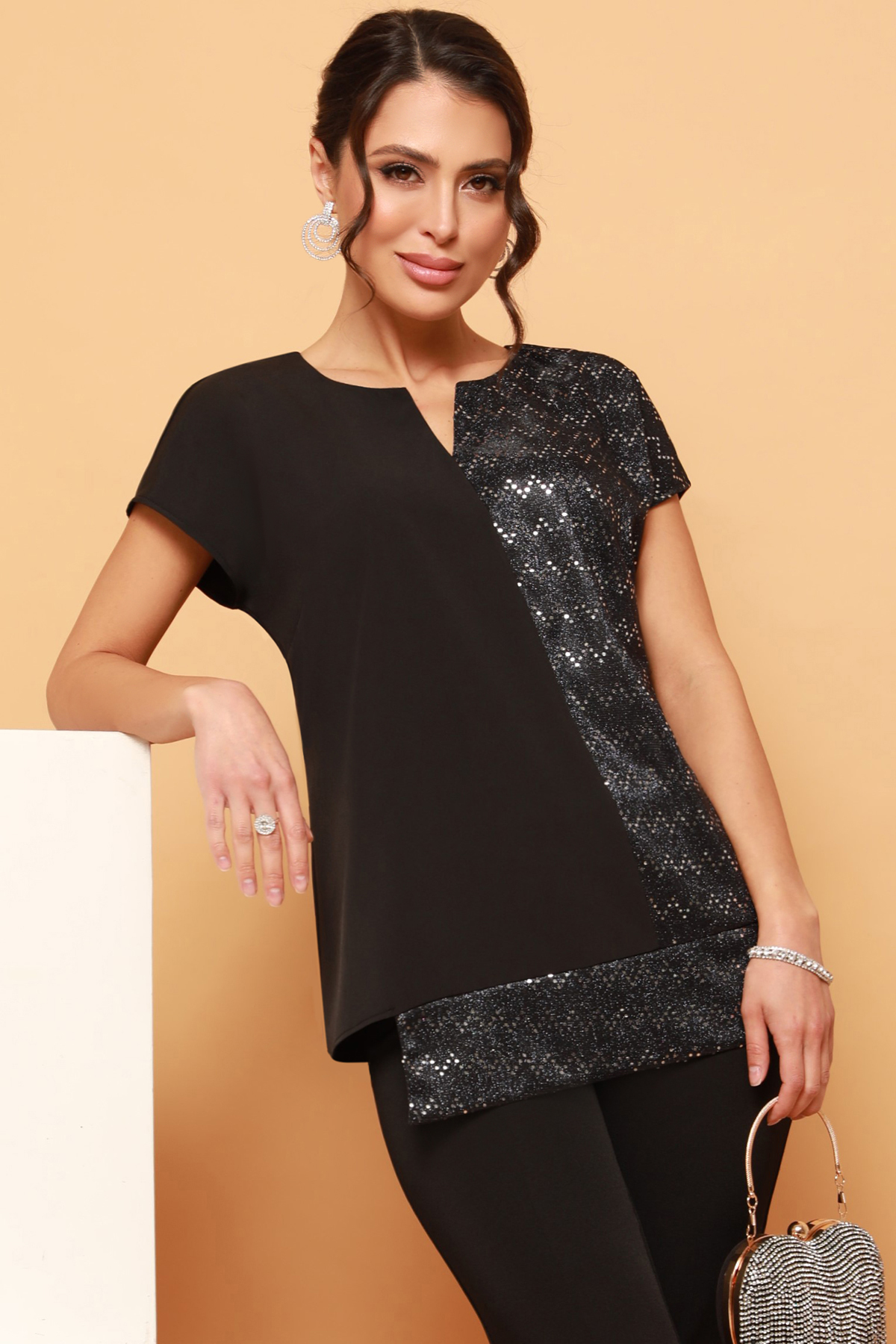 Асимметричная трикотажная блузка с блестками — одновременно элегантный и нарядный вариант, который преобразит любой образ. Прямой фасон придает модели легкость, а фигурный вырез горловины смотрится утонченно и визуально удлиняет шею. Асимметричный низ превращает блузку в настоящий хит сезона, ведь такой крой стал одним из трендов зимы-2024 и не намерен сдавать позиции. Контраст однотонной ткани и мерцающих блесток становится еще одной стильной изюминкой модели. Роскошная блузка будет идеальным выбором для праздничных мероприятий, вечерних выходов в свет, свиданий и особых дней на работе. Ткань с эффектным блеском украсит не хуже драгоценных камней и позволит каждой женщине почувствовать себя неотразимой. Чтобы блузка не деформировалась, рекомендуется стирать ее отдельно от других вещей в деликатном режиме с использованием жидкого моющего средства.