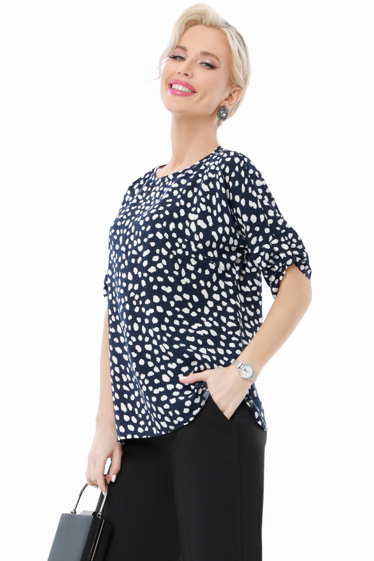 Элегантная блузка с коротким рукавом — находка для женщин, которые ценят стиль и комфорт. Прямой силуэт с небольшими разрезами по бокам не подчеркивает недостатки фигуры и дарит чувство легкости. Укороченные рукава собраны патами, которые образуют нежную драпировку. Застежка-капелька на спинке становится изящным завершением модели. Классическая длина ниже талии позволяет носить блузку как навыпуск, так и в заправленном виде с небольшим напуском. Модель выполнена из легкой, приятной к телу ткани, которая хорошо пропускает воздух и не просвечивает. Блузка из штапеля требует бережного ухода, поэтому рекомендуется стирать ее в деликатном режиме при температуре до 30 градусов или вручную с использованием мягких моющих средств, не выкручивать и сушить в расправленном виде.