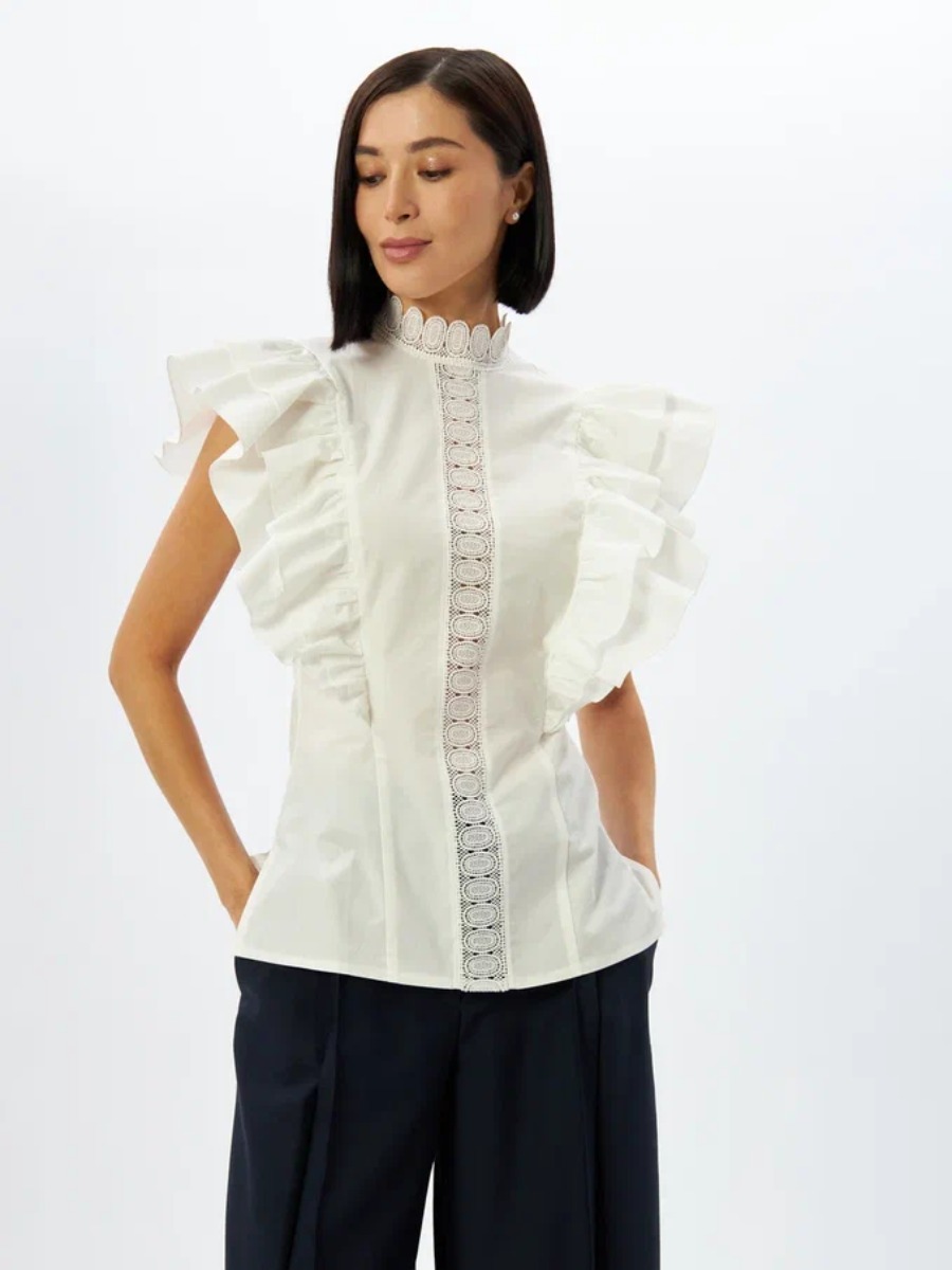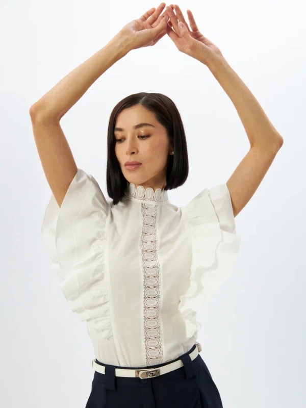 Блузка из хлопка с крыльями и кружевом OD-912-1 белый