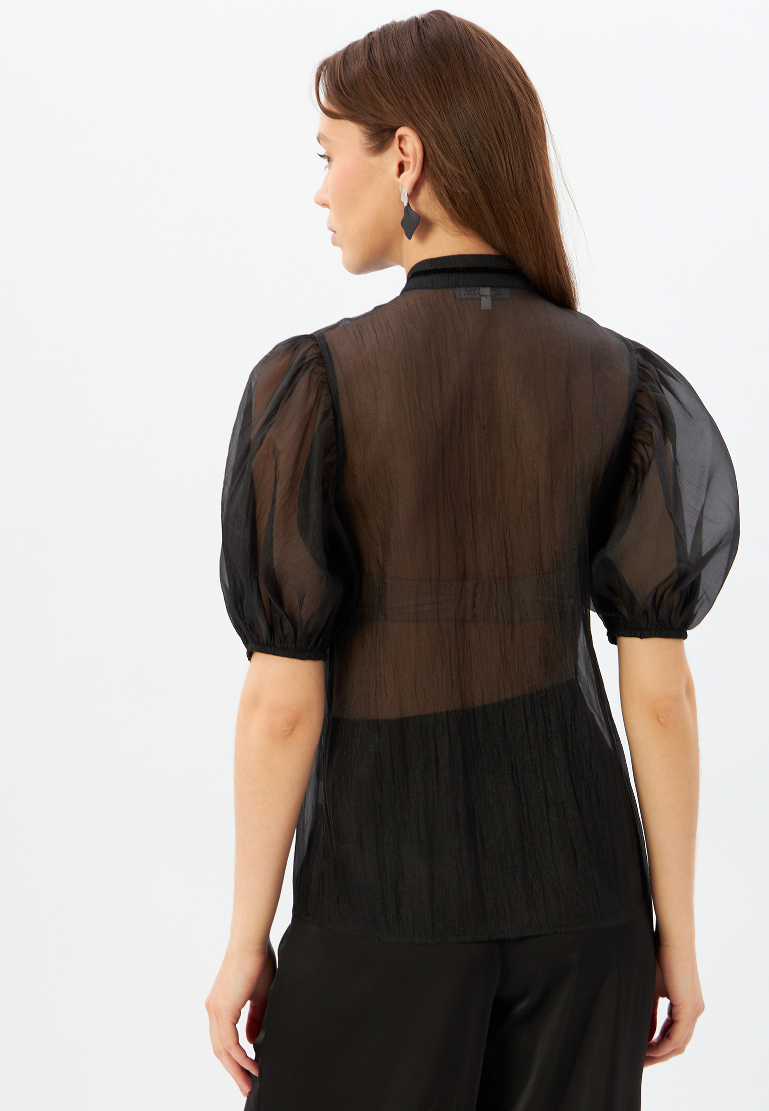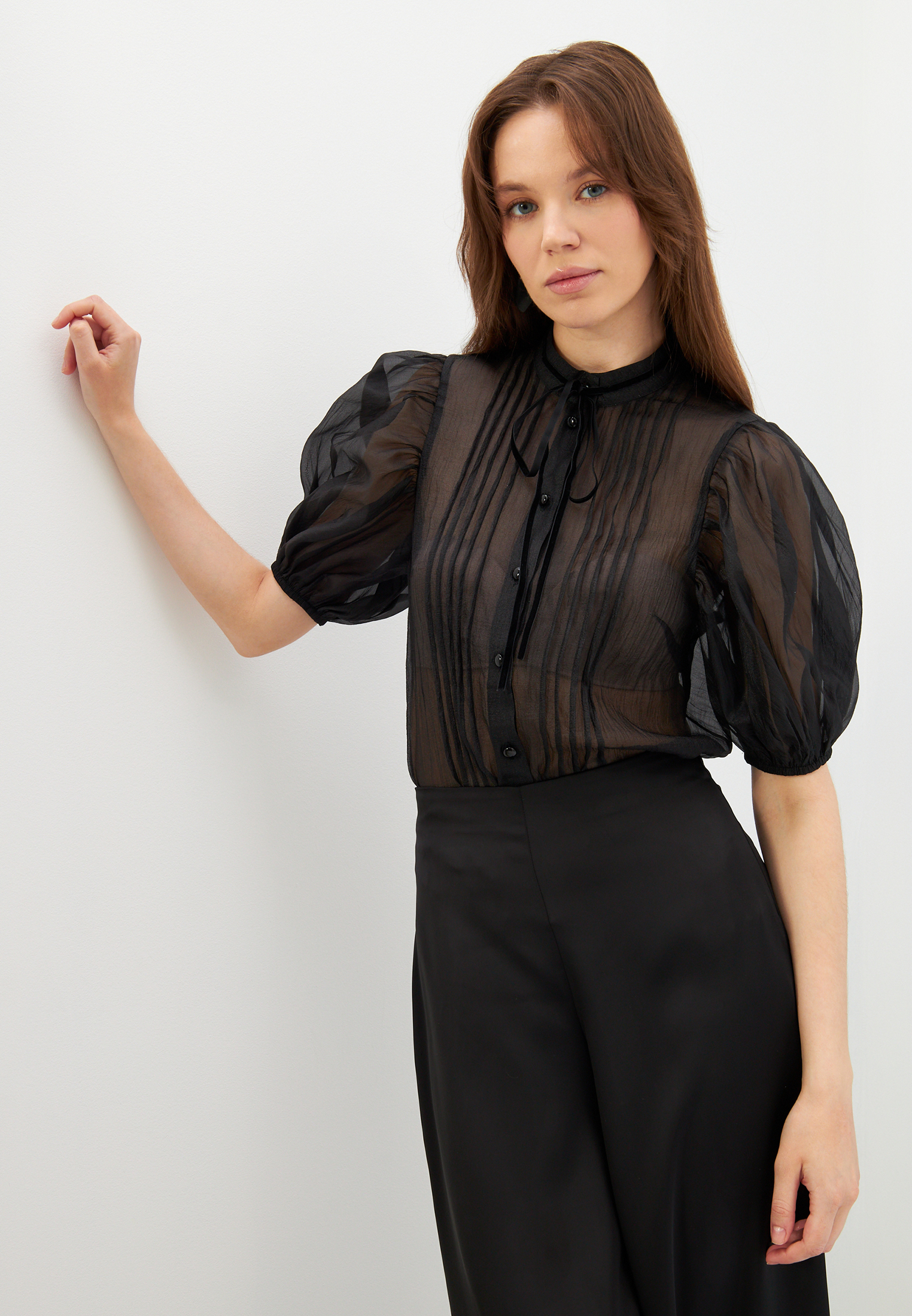 Блузка из органзы с бархатной завязкой и защипами OD-951-3 черный