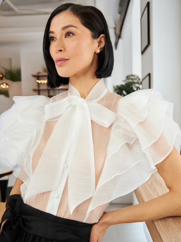 Блузка из органзы с рюшами и бантом OD-929-1 белый