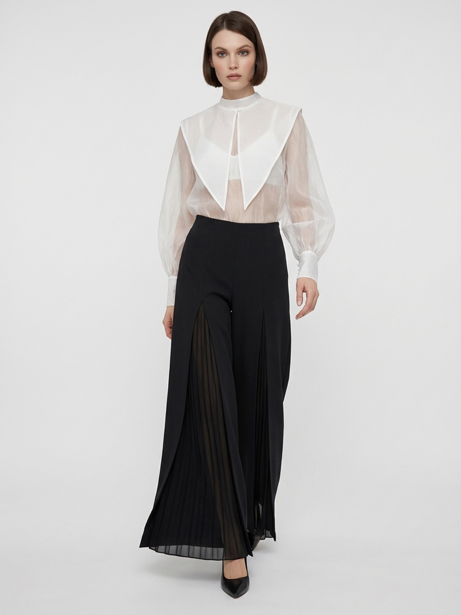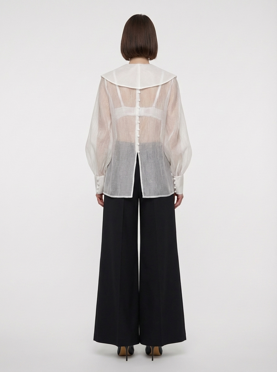 Блузка из органзы со съемным воротником OD-930-1 синий