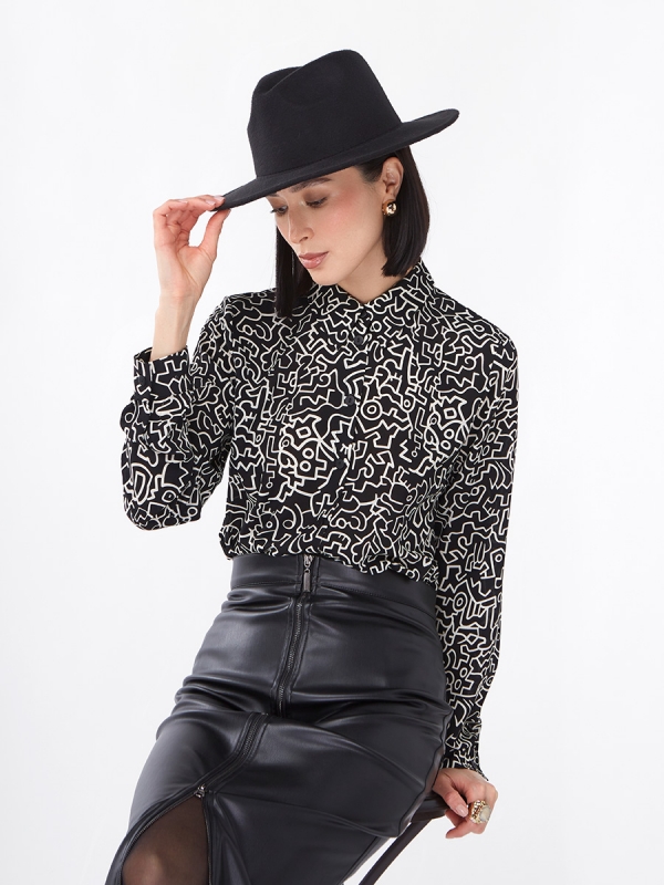 Блузка из шифона OD-887-4 черный с молочным
