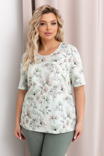 Блузка прямого силуэта из легкой ткани с цветочным принтом. Короткие втачные рукава подчеркивают изящество рук. Круглая горловина на обтачке. Модель без застежек. Низ прямой, по бокам разрезы.