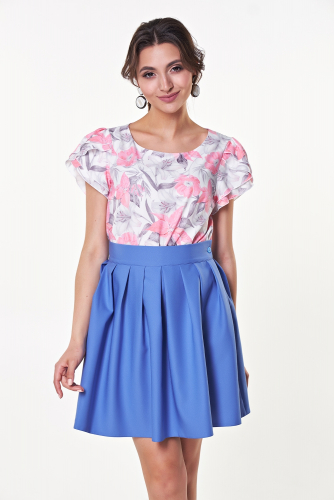 Очаровательная блуза прямого силуэта из легкого полотна с цветочным принтом. Короткие рукава-крылышки с защипами по окату добавят нежности Вашему образу. Округлая горловина на внутренней обтачке. Низ прямой, без разрезов. Универсальная блузка, которая будет хорошо сочетаться как с брюками, так и с юбкой.