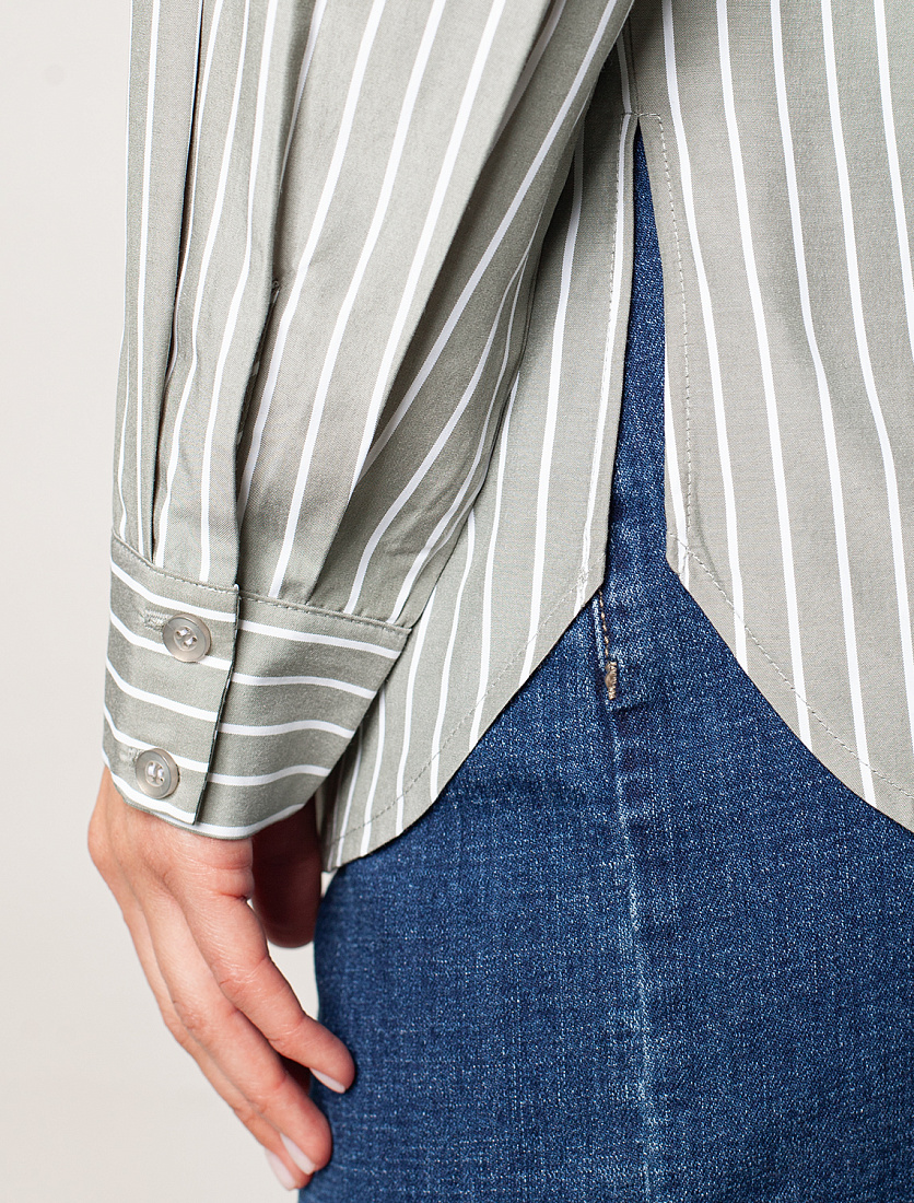 Блузка прямого силуэта с кругленным низом как у рубашки выполнена из премиальной вискозы. Лаконичная модель со спущенной линией плеча и застежкой на потайные пуговицы хорошо впишется в деловые образы с классическими брюками. Или в расслабленном аутфите с джинсами и кроссовками. Материал изделия обладает особой прочностью при этом легкий и маломнущийся. 55%Вис 45%ПЭ