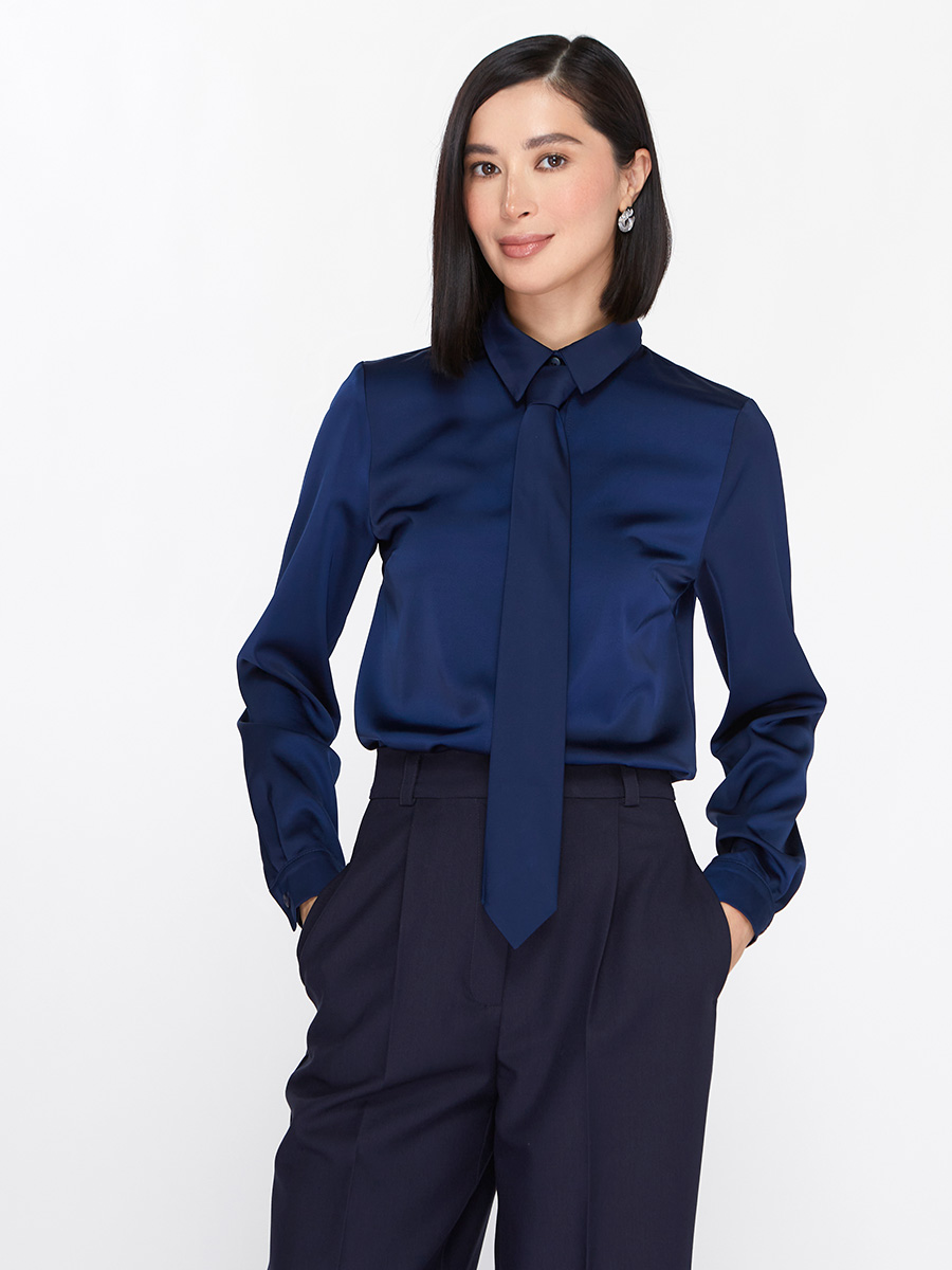 Блузка с галстуком OD-881-1 темно-синий