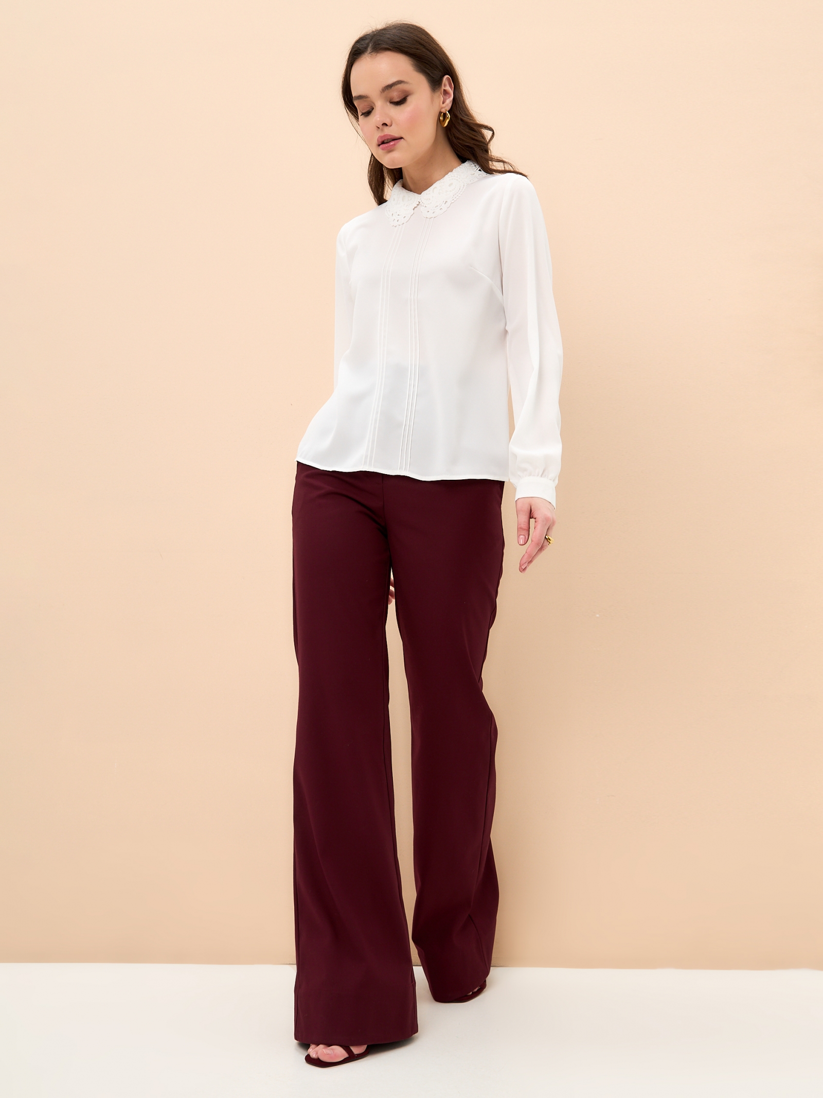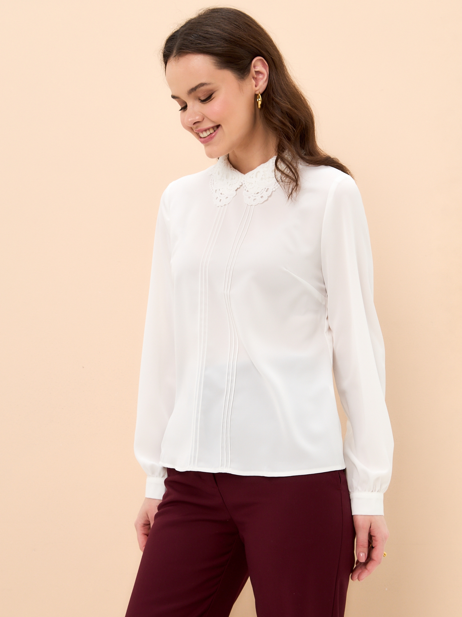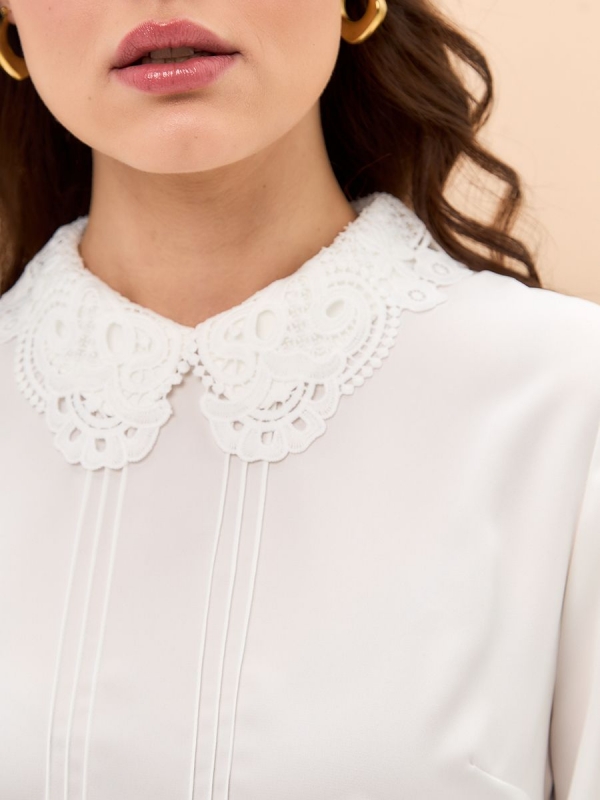 Блузка с кружевным воротником OD-861-1 молочный