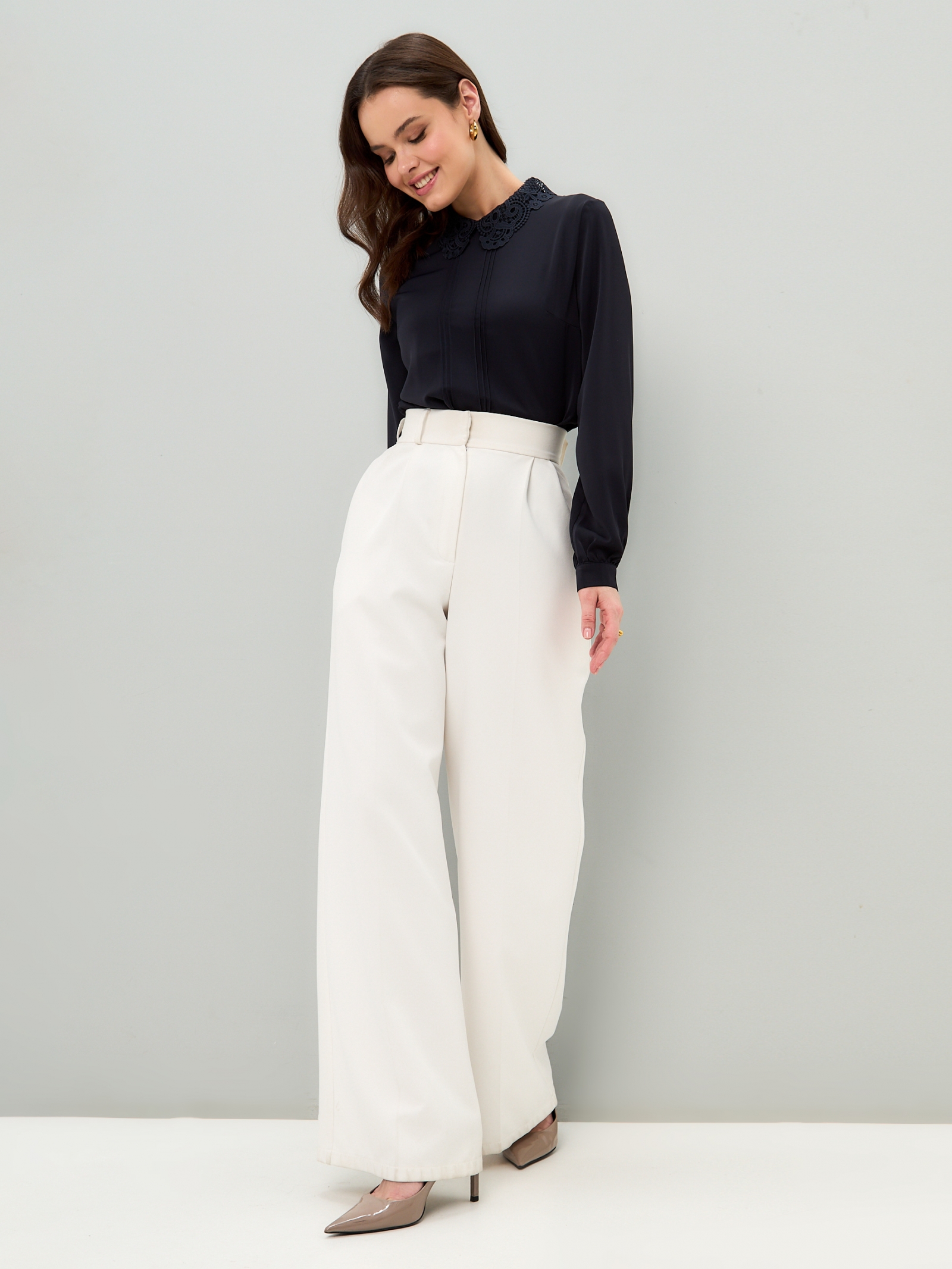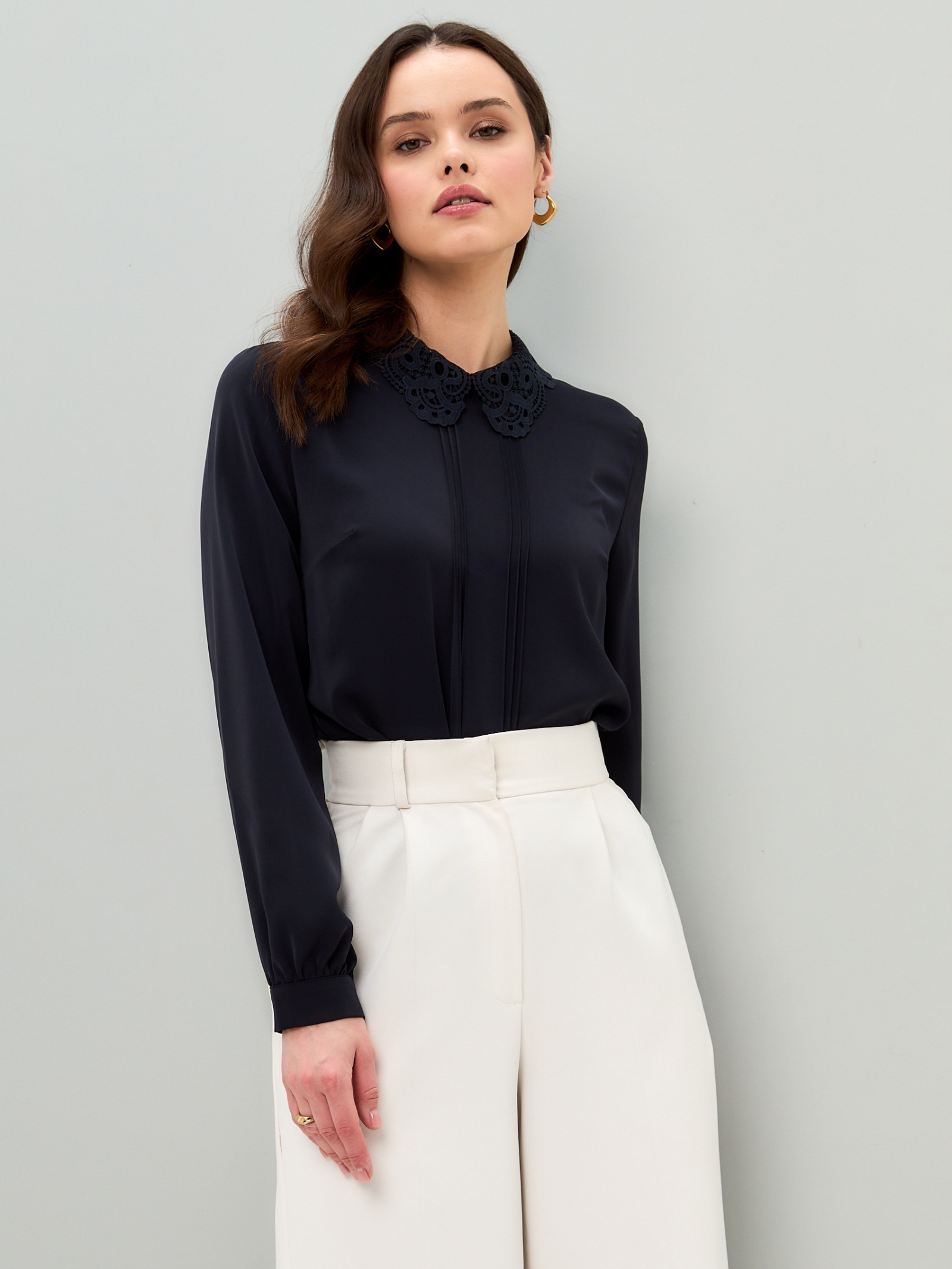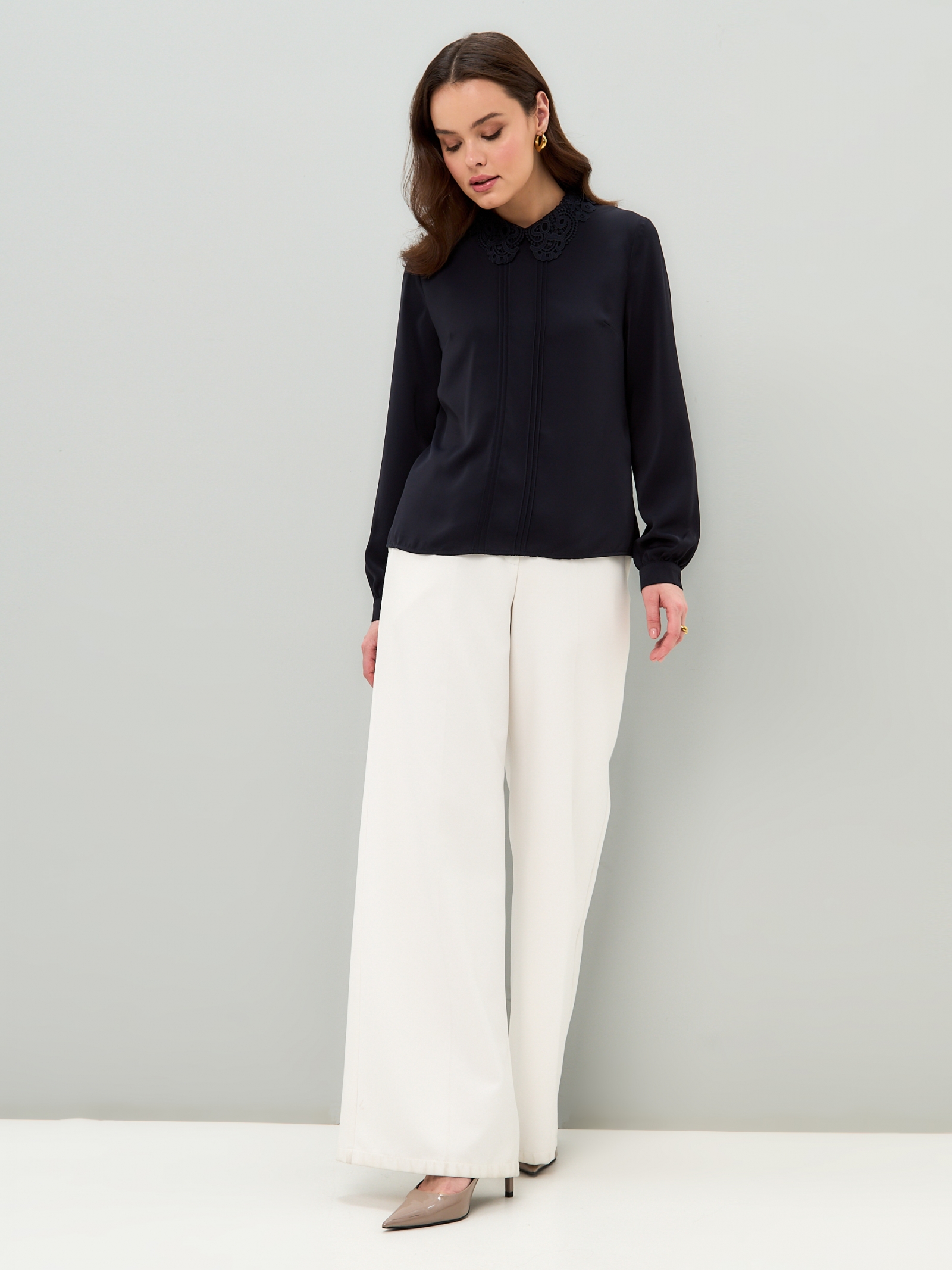 Блузка с кружевным воротником OD-861-2 темно-синий