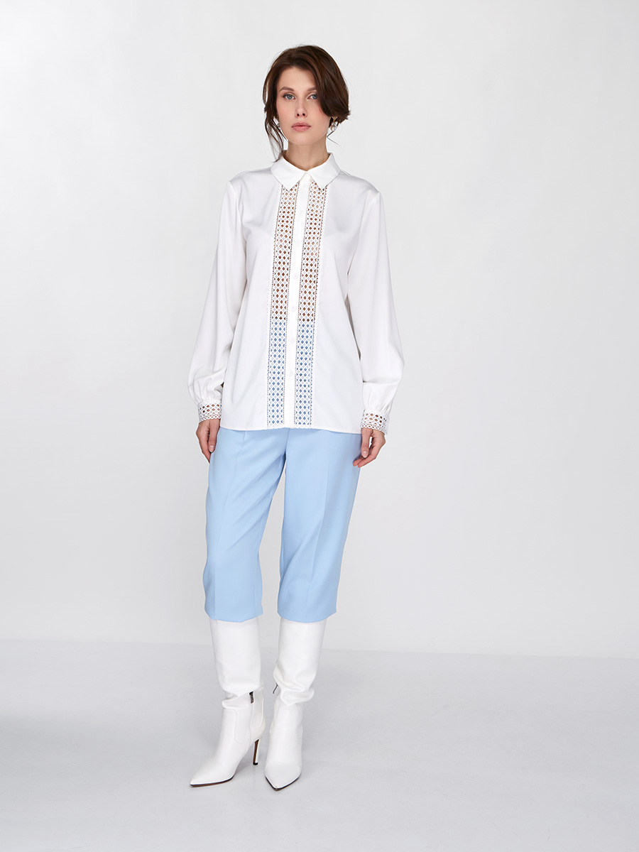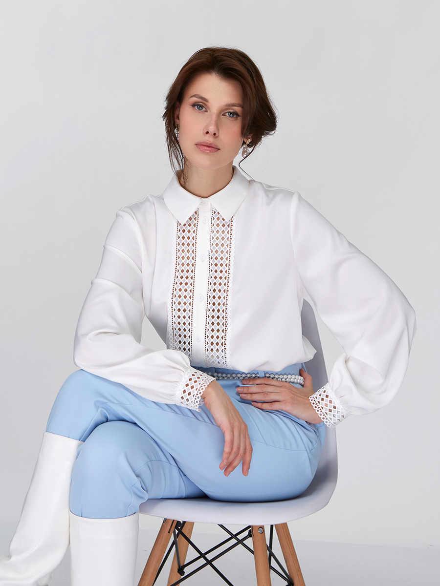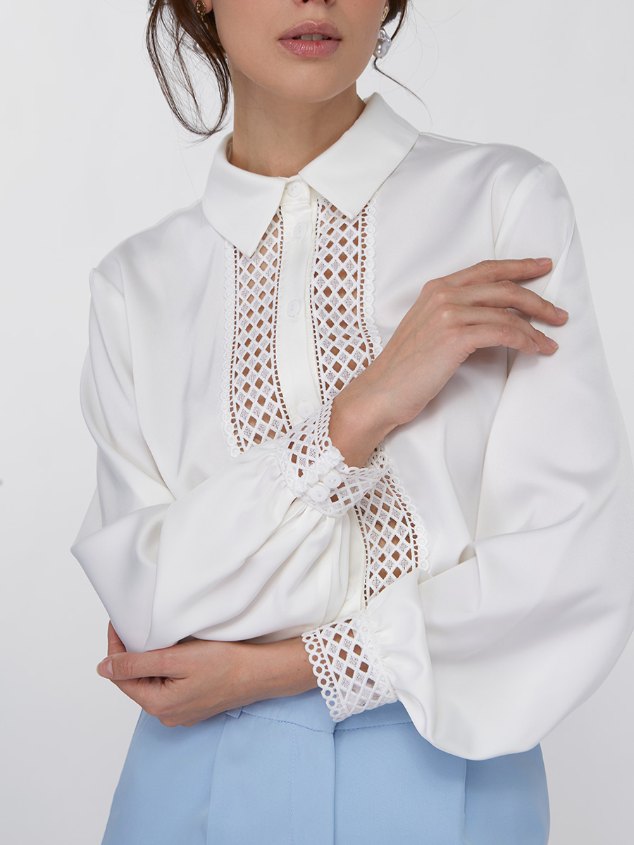 Утонченное кружево: Декоративные вставки из кружева на полочке и манжетах придают блузке особую нежность и шарм, выделяя ее на фоне стандартных предложений.