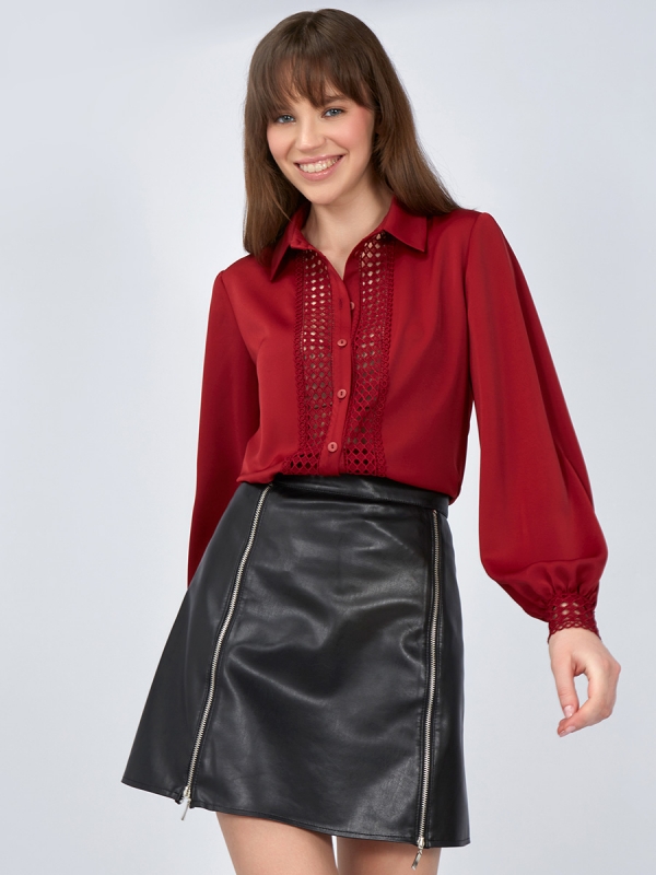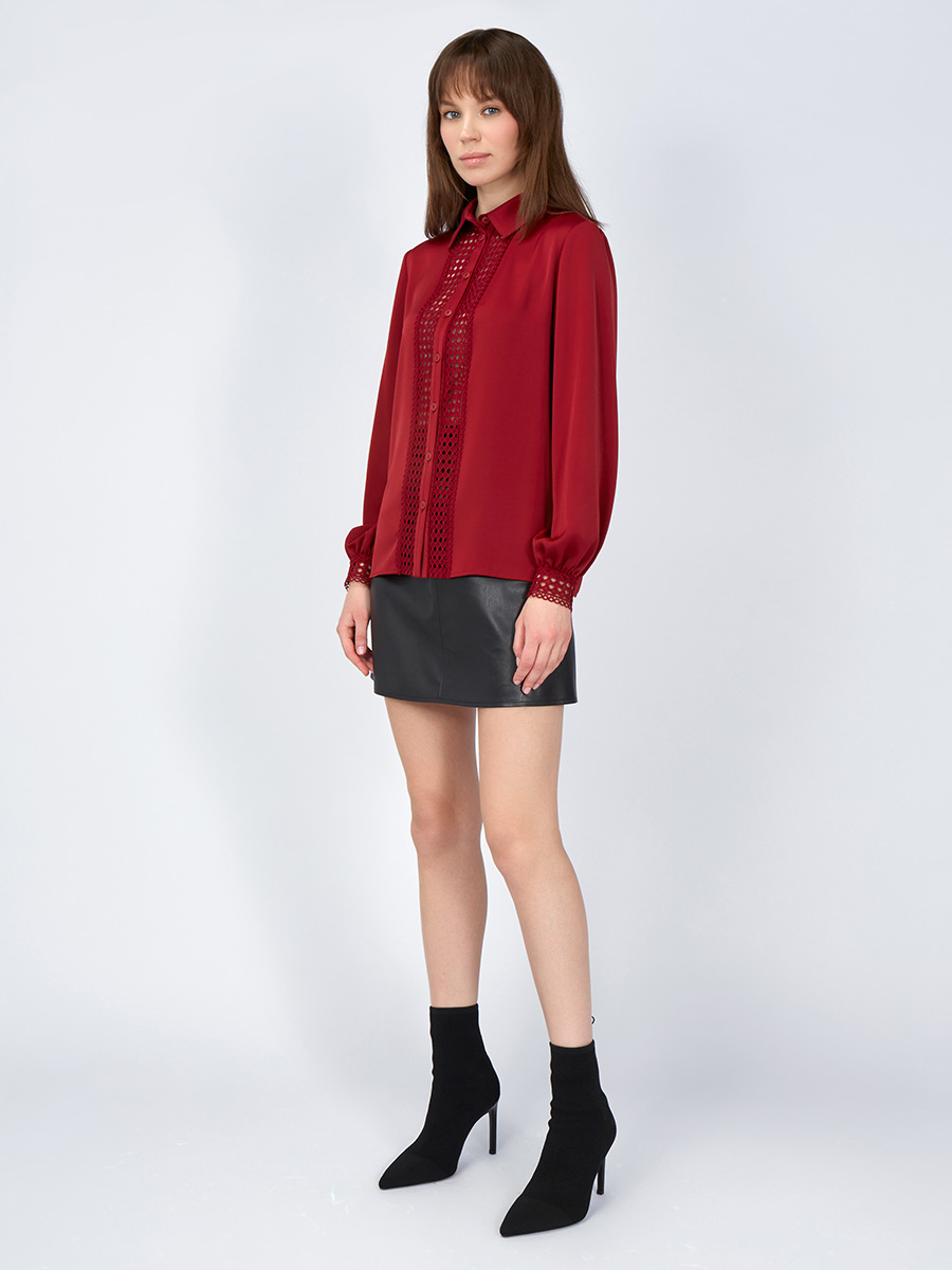 Блузка с кружевом OD-808-2 бордовый