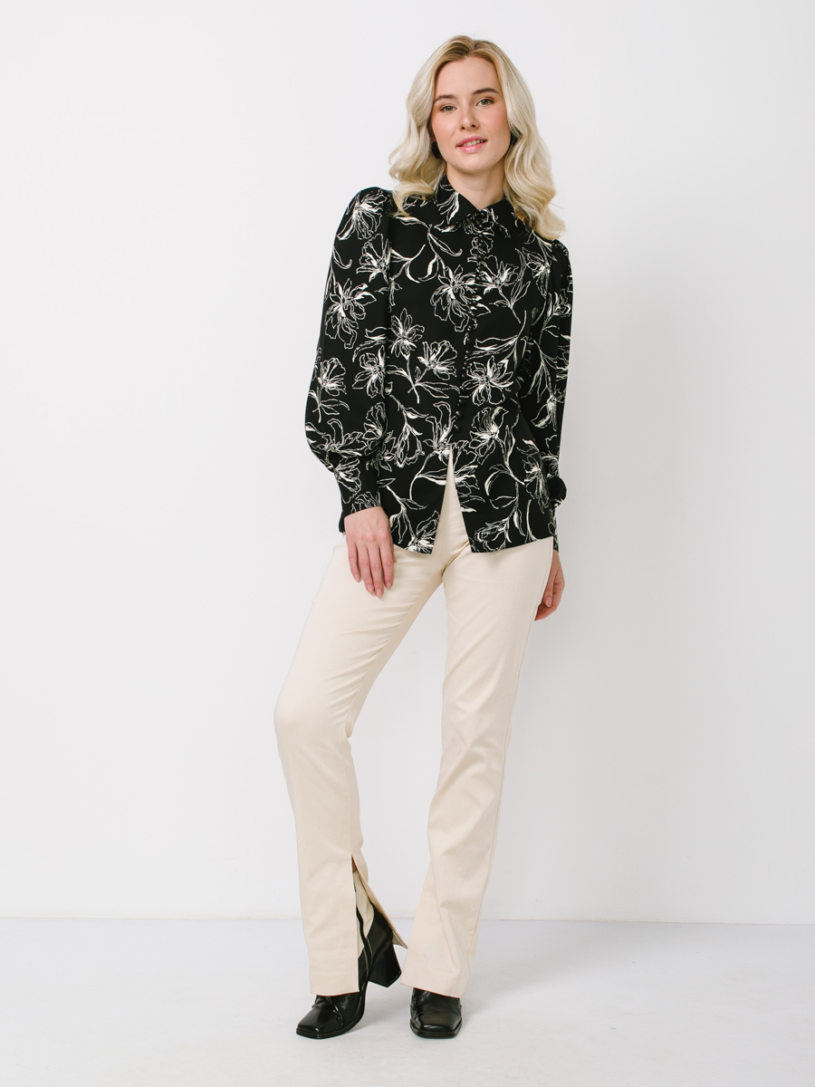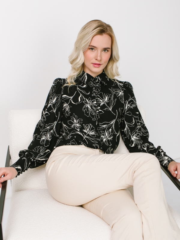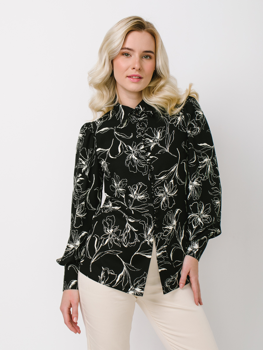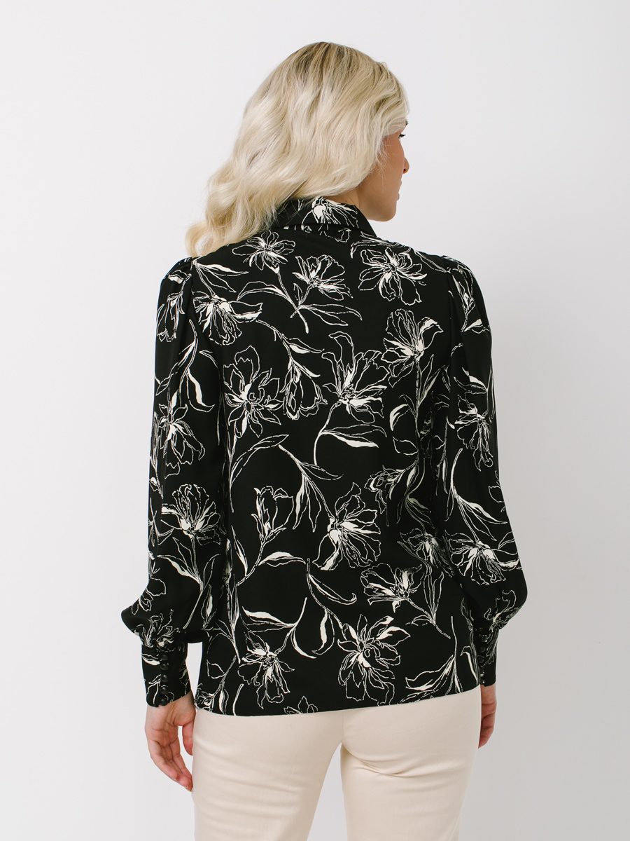 Блузка с принтом OD-639-25 черная белый цветок