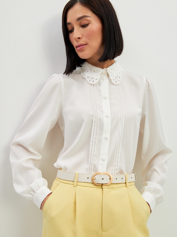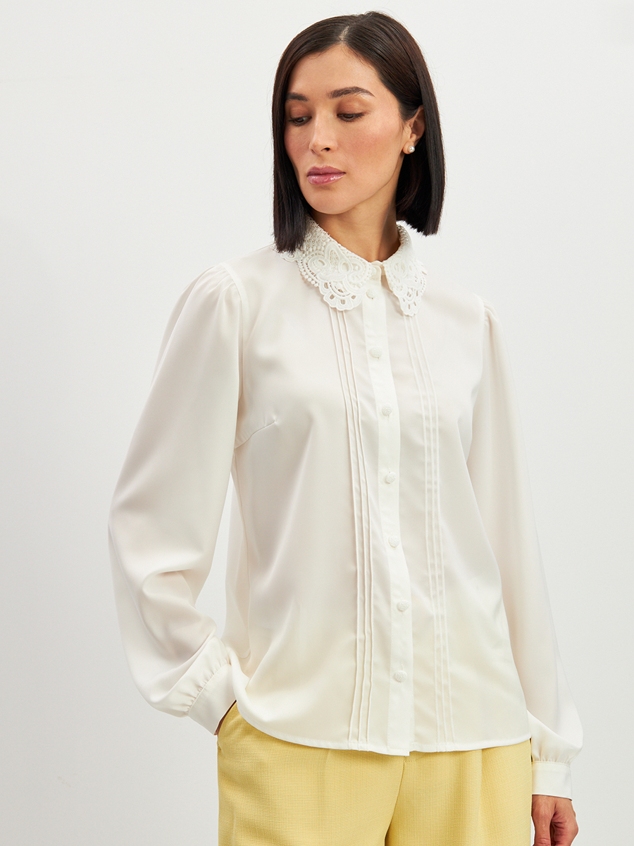 Блузка с воротником из кружева и защипами OD-913-1 белый