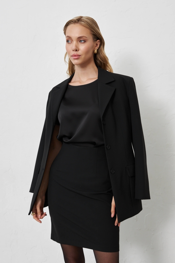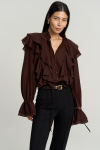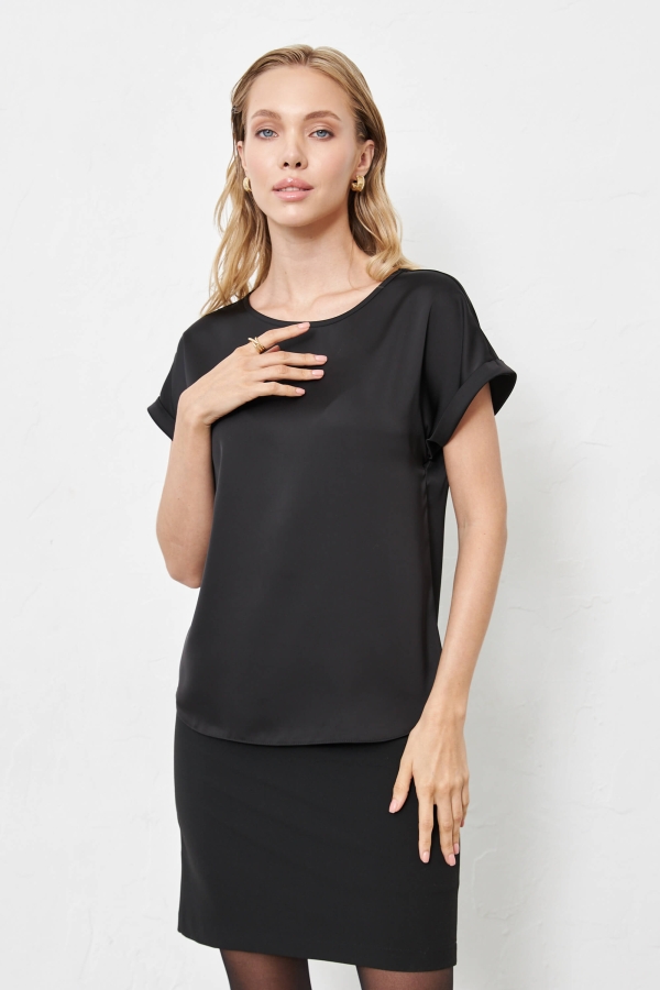 Комфортная блуза из атласного полотна высокого качества. Модель прямого силуэта. Спущенное плечо на манжете.