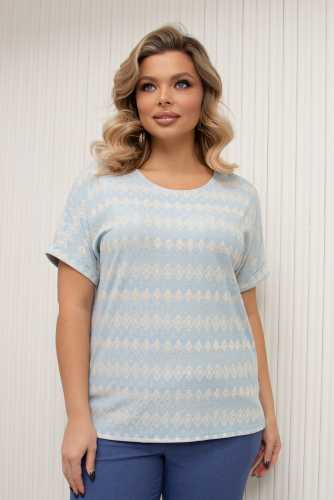 Красивая футболка прямого силуэта из трикотажного полотна. Короткие цельнокроеные рукава, оканчиваются манжетами на отворотах. Округлый вырез горловины. Низ ровный, по бокам разрезы.