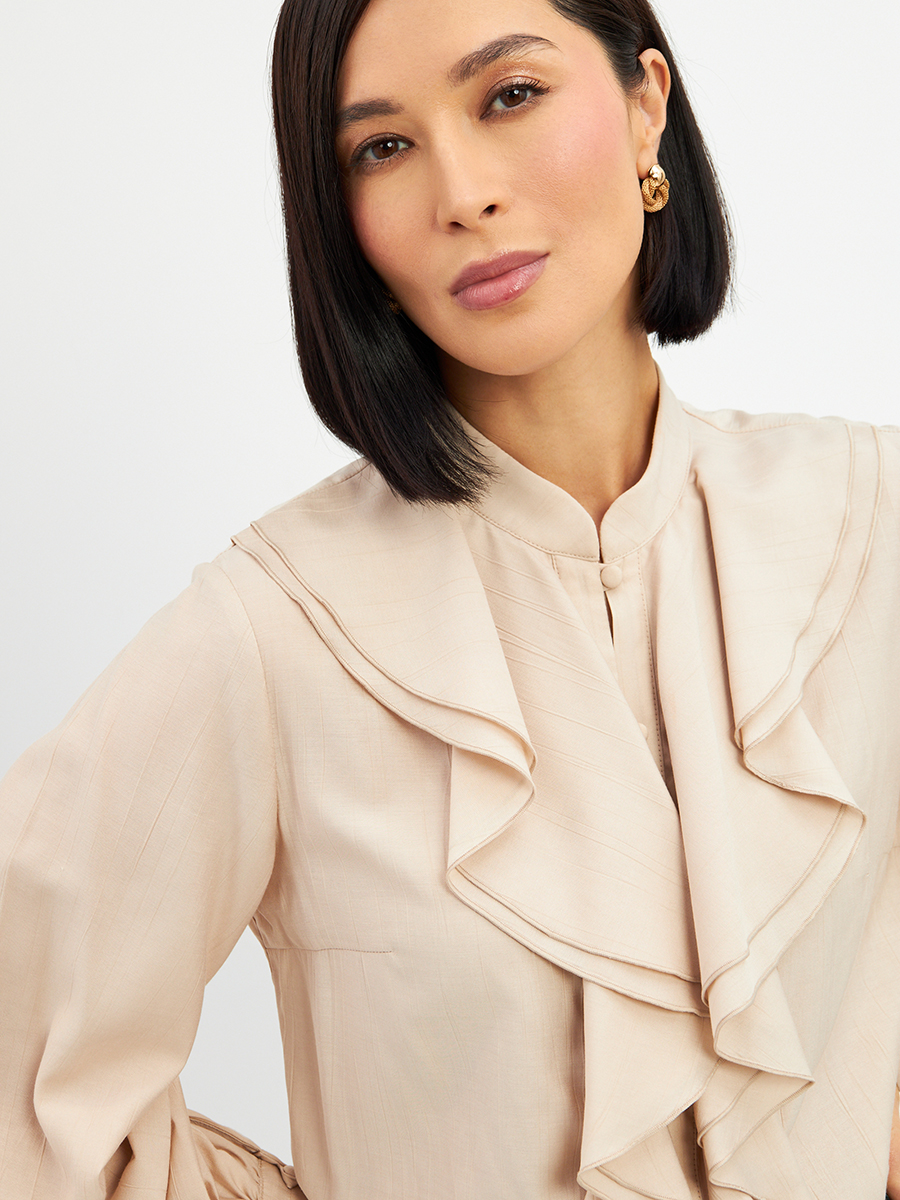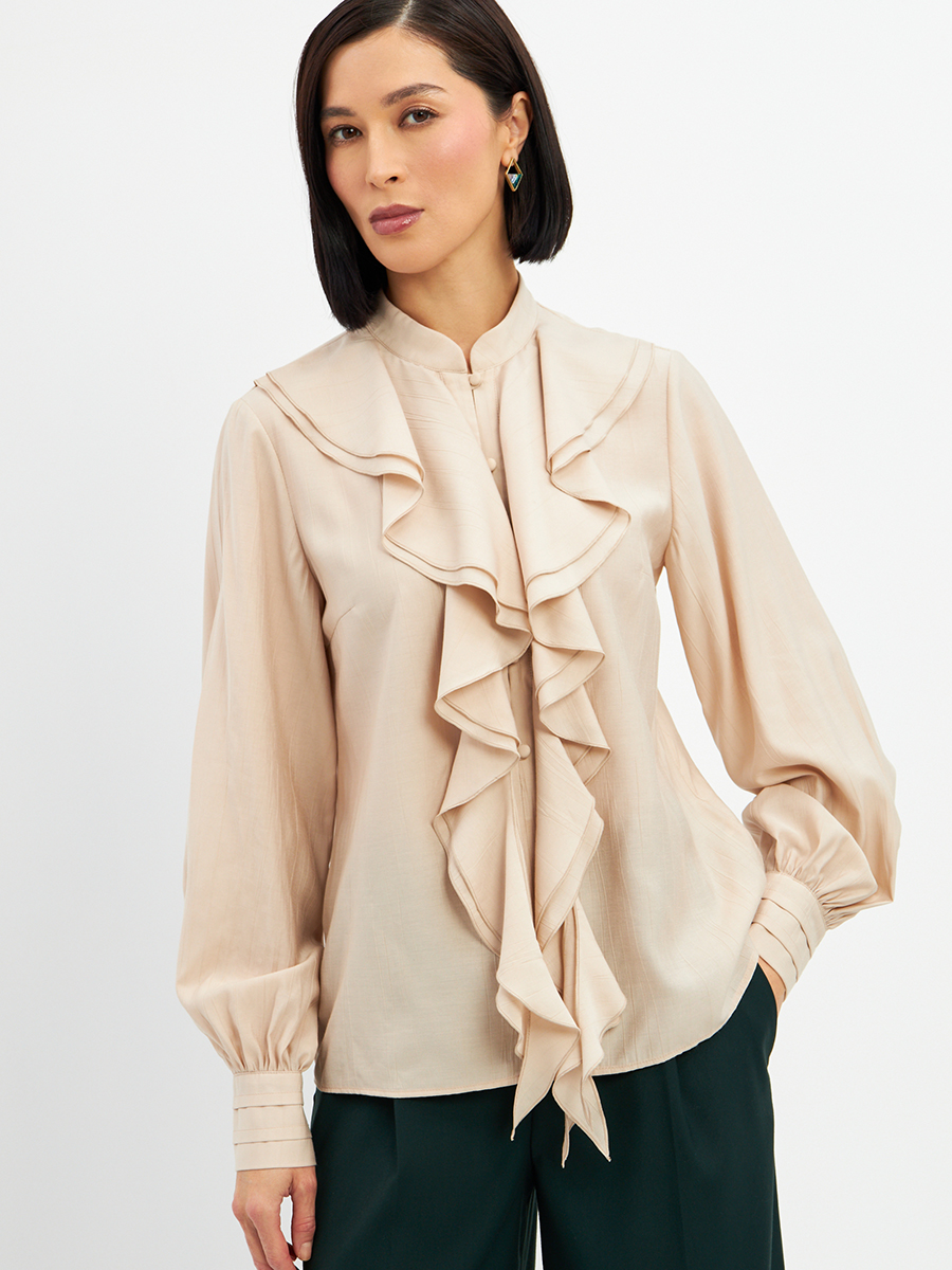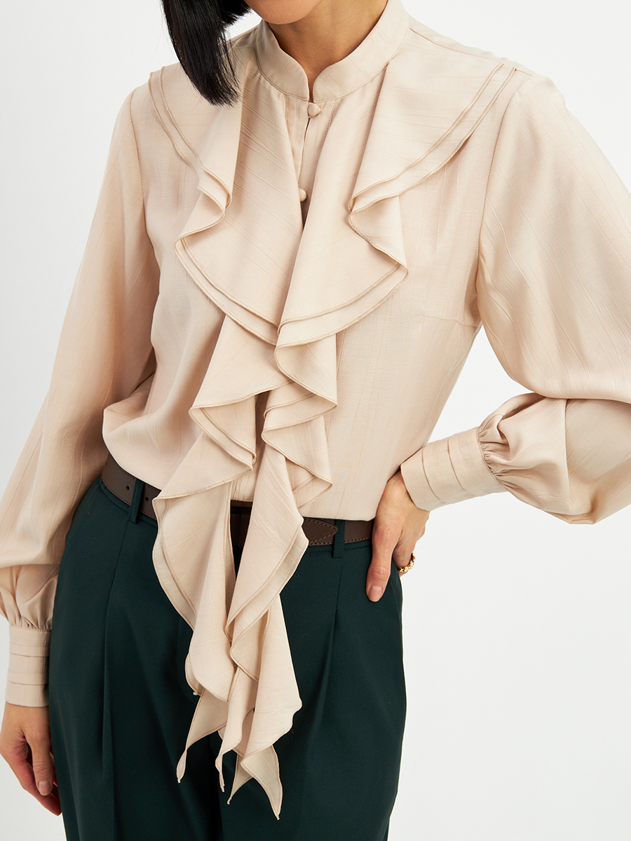 Блузкас отлетными рюшами OD-914-1 бежевый
