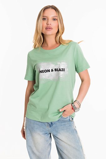 Футболка из однотонной кулирки, 100% хлопок. С коротким втачным рукавом и притачной планкой по горловине. Спереди нанесён принт.