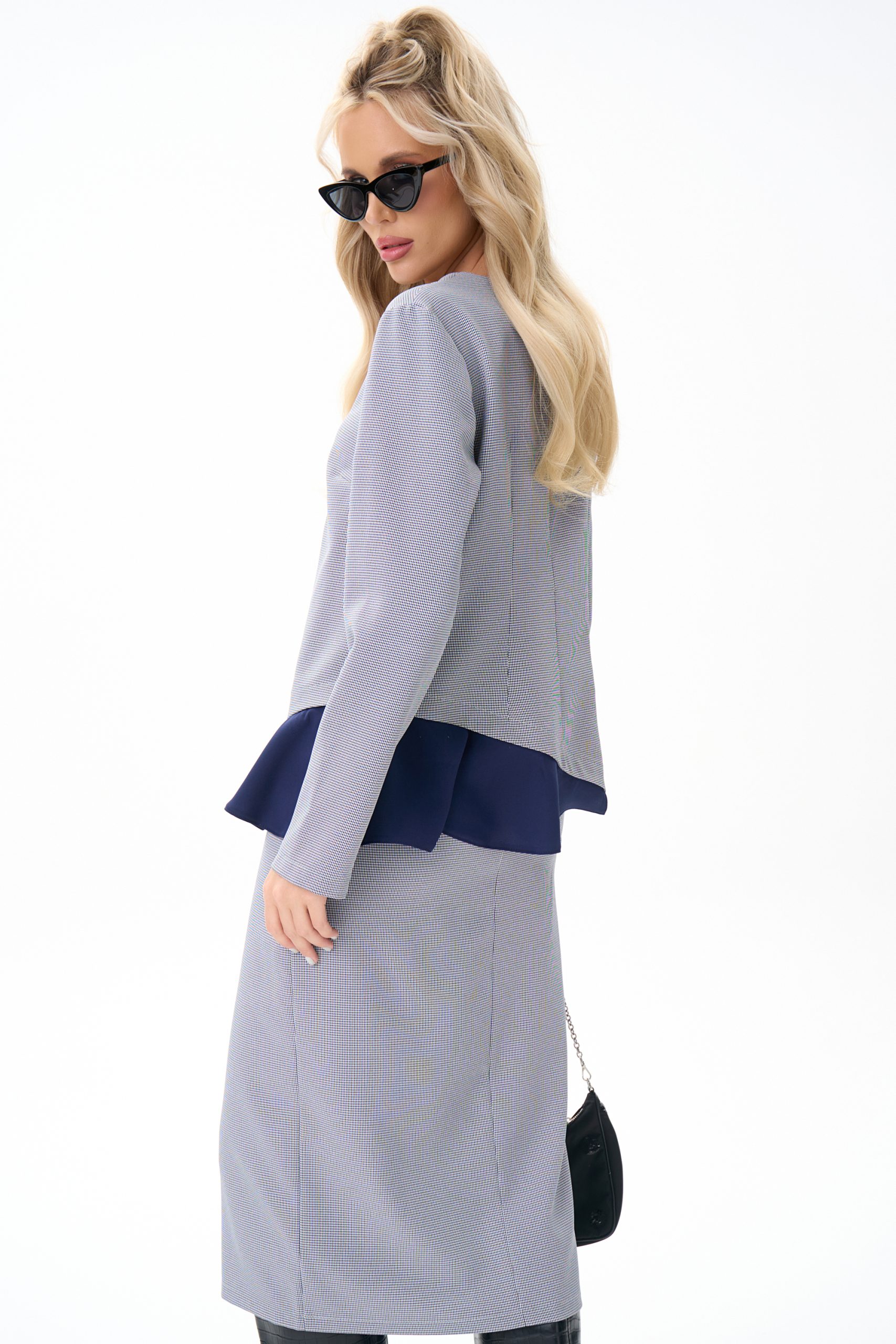 Элегантный костюм, сочетающий асимметричный блузон и прямую юбку миди. Идеальный выбор для делового образа с ноткой современности.