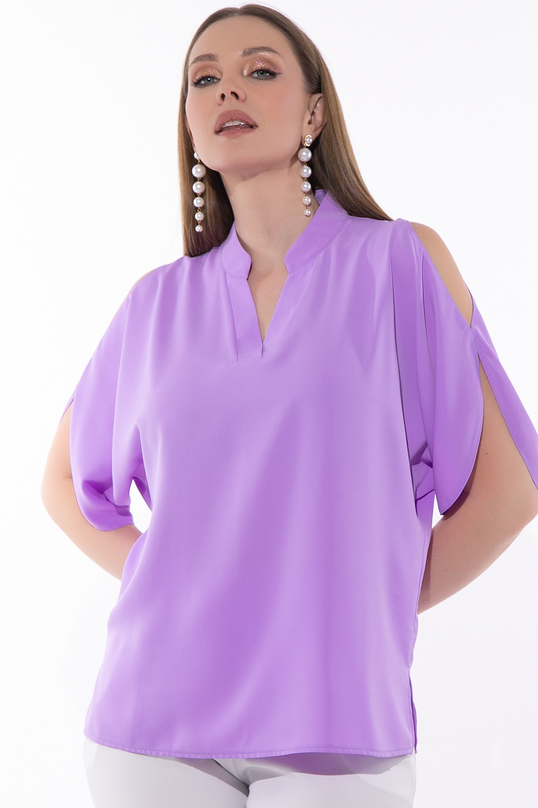 Сенсационный тренд на этот сезон — романтичный блузон с рукавами реглан и открытыми плечами. Легкий фасон свободного силуэта придают блузону мягкость, воздушность и романтичность.