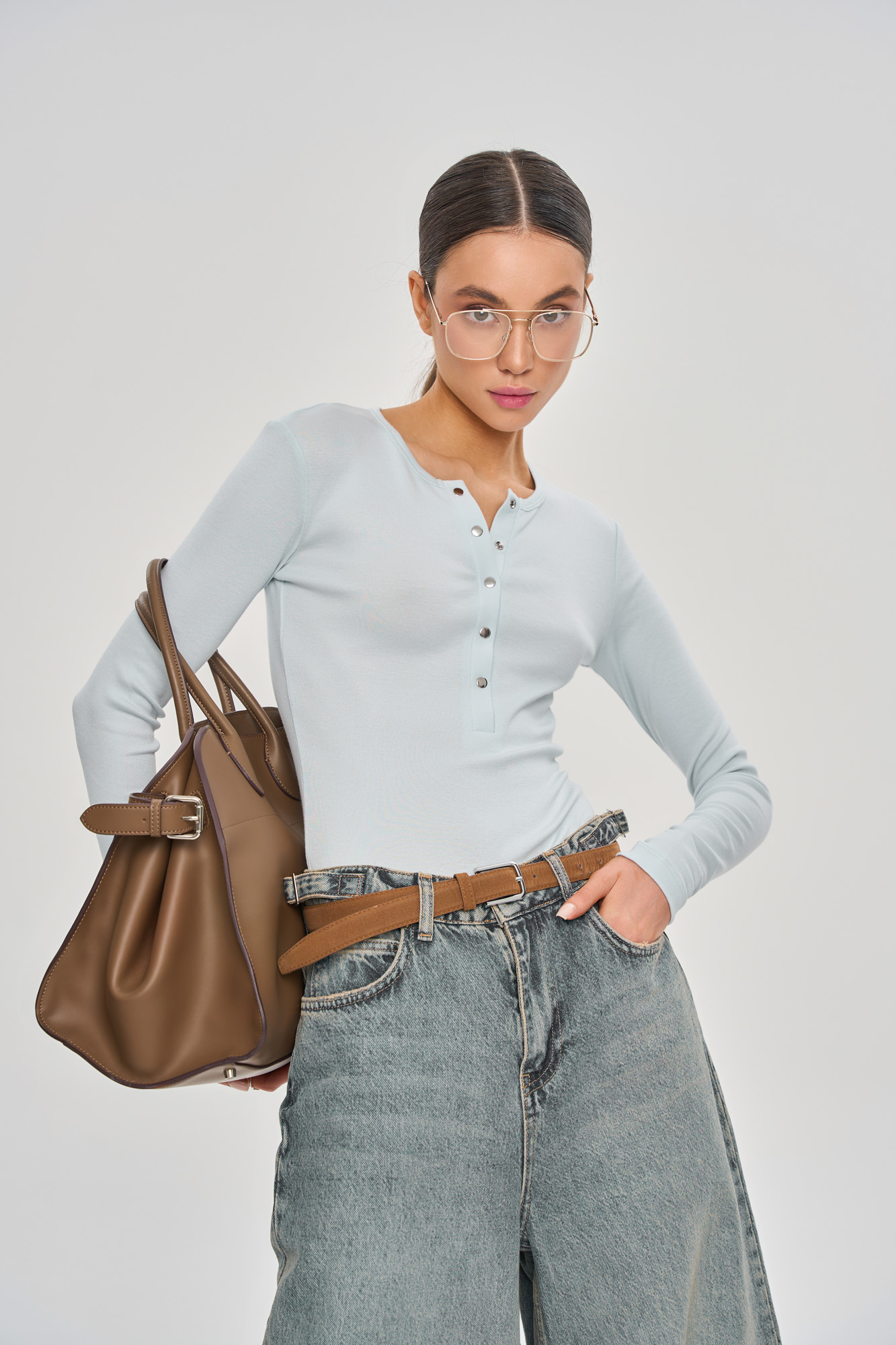 Базовая модель с актуальной застежкой поло и классическим втачным длинным рукавом.