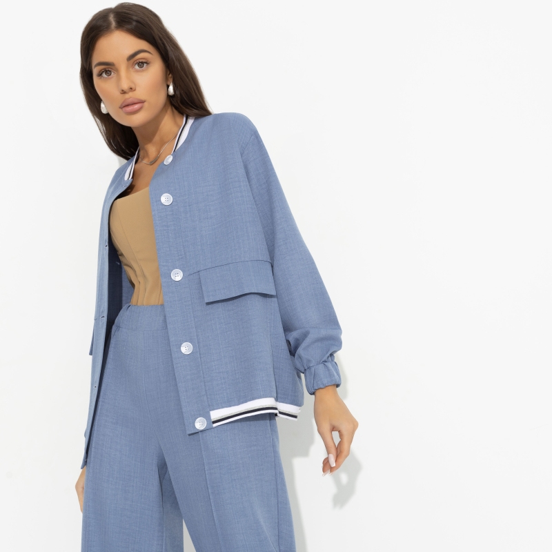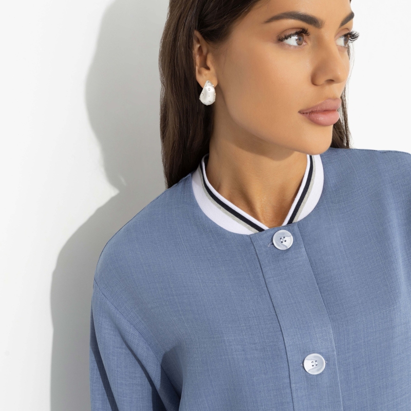 Бомбер «Бунтарка (blue)» — это не просто элемент гардероба, это воплощение стиля и утонченности. Представьте себе, как этот бомбер женский больших размеров станет акцентом вашего образа, подчеркивая вашу индивидуальность и уверенность. Изготовленный из костюмной ткани «лерисс», он обладает уникальной текстурой и блеском, которые отличают его от остальных. Свободный крой и элегантные пуговицы придают этому изделию лаконичность и изящество, делая его идеальным выбором для тех, кто ценит высокую моду и утонченность. Вам стоит купить оптом, чтобы предложить своим клиентам нечто особенное, что подчеркнет их уникальность.