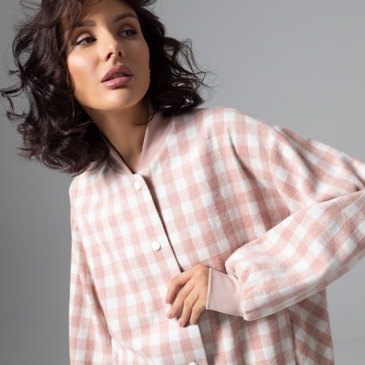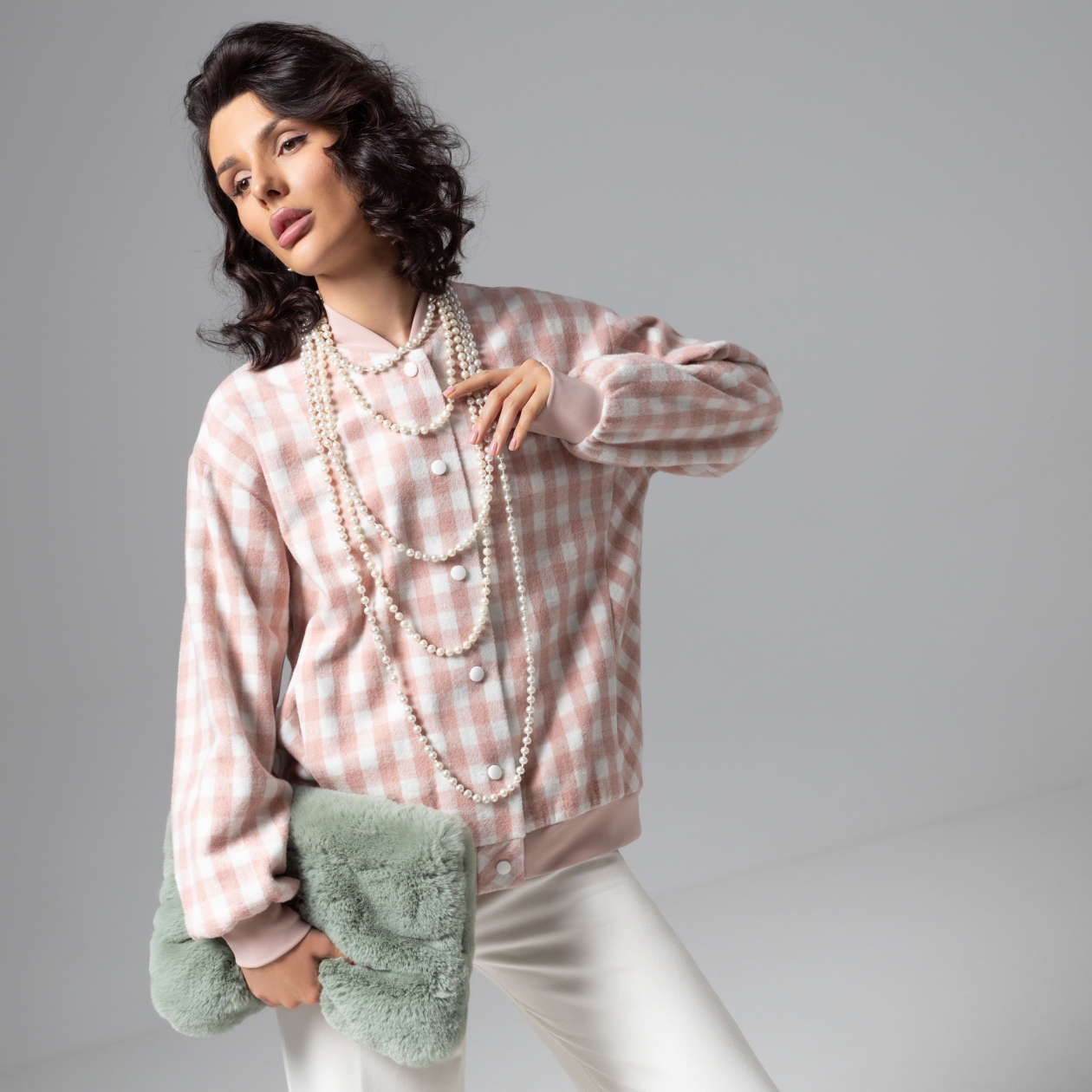 Бомбер, который станет фаворитом сезона. Трендовый цвет и модная клетка. Безупречное качество пошива. Эстетическая составляющая соединенная с функциональным комфортом. Бомбер классического силуэта из мягкой, тактильно прияятной ткани, слегка оверсайз. Изделие с карманами и подкладом.