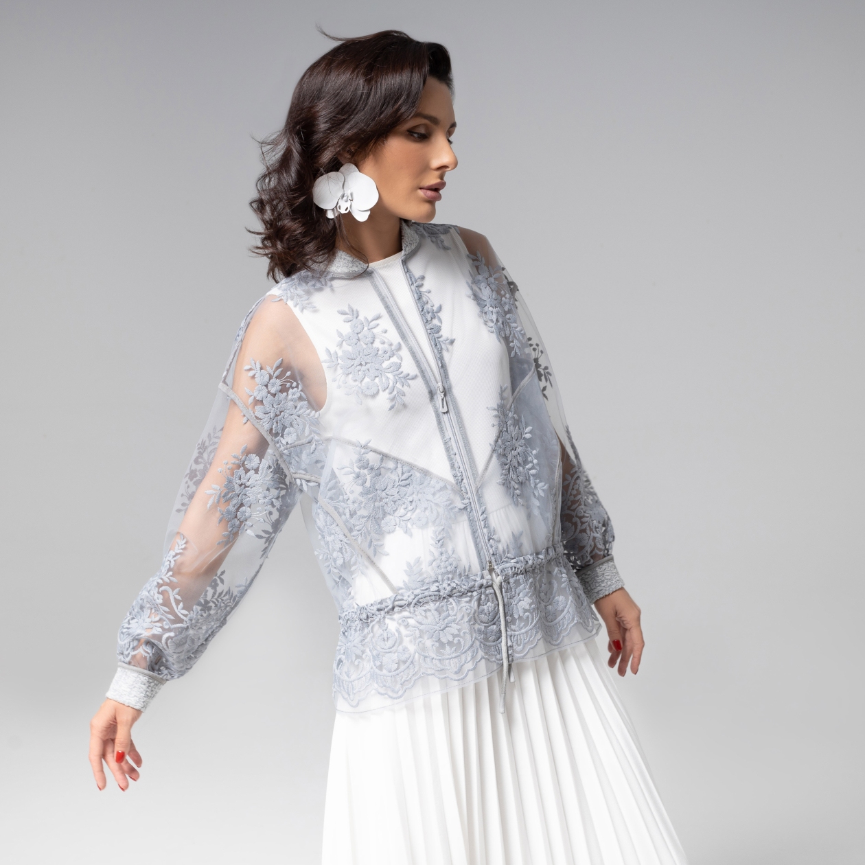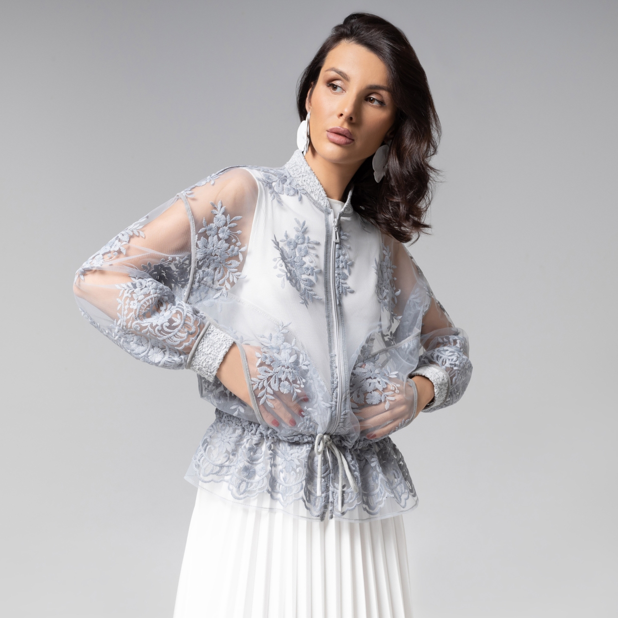 Бомбер ЧАРУТТИ из коллекции PREMIUM – современный шик. Воздушный силуэт, дополненный вишивкой премиум-класса, создает эффектную игру прозрачности и объема, подчеркивая изысканность линий. Безупречный пошив с филигранной обработкой швов и продуманной кулиской демонстрирует высочайший уровень мастерства. Такой бомбер – не просто предмет гардероба, а камерное произведение модного искусства, воплощение утонченной эстетики. Изделие с карманами.