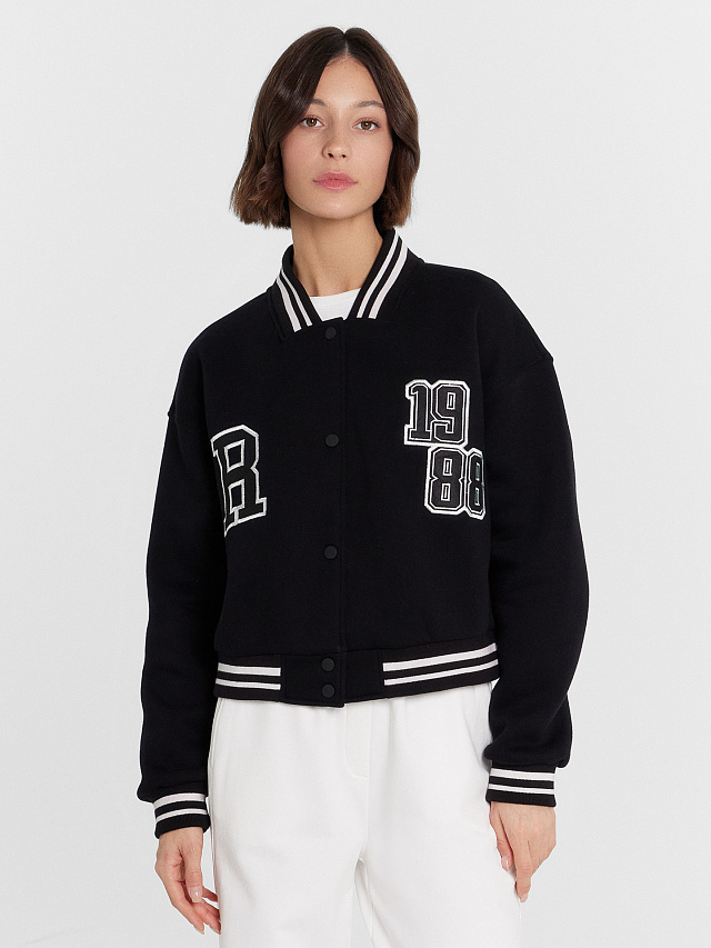 Бомбер женский черный с вышивкой