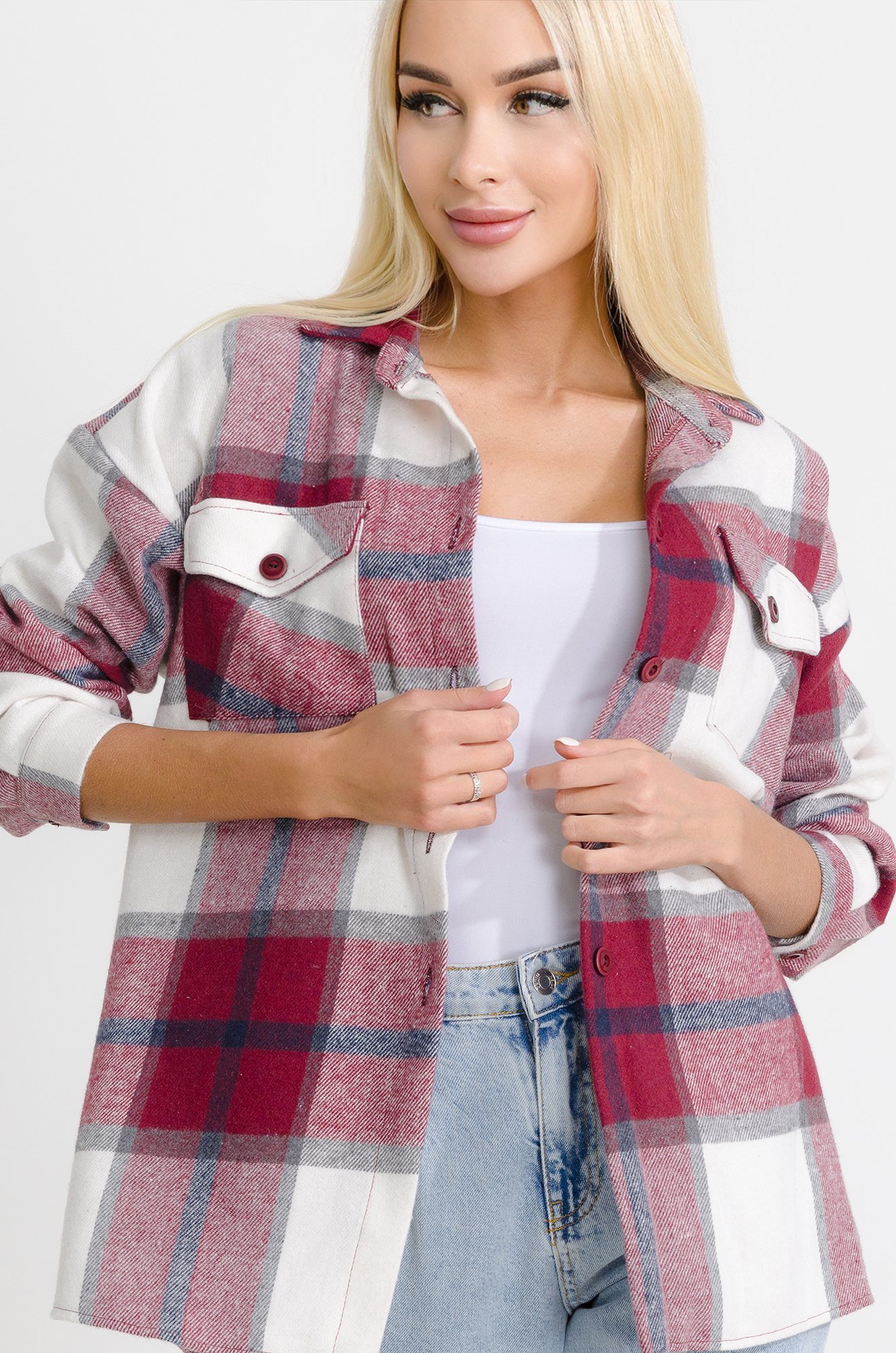 Теплая женская рубашка в клетку выполнена из мягкого 100% хлопка. Карманы на груди, удлиненная спинка, принт в клеточку, крой оверсайз – каждая деталь делает рубашку для женщин стильной и уютной.