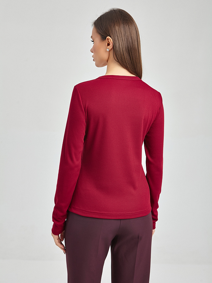 Модель полуприлегающего силуэта. Спереди планка с застёжкой на петли и пуговицы. Горловина обработана бейкой.