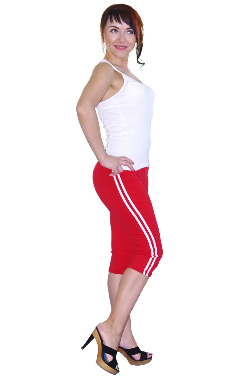 Классные женские бриджи, выполнены из эластичного кулирного полотна составом 95% хлопок 5% лайкра. Благодаря синтетической нити прекрасно тянутся, облегая фигуру и подчеркивая её достоинства. Бриджи декорированы контрастными лампасами из износоустойчивого материала.