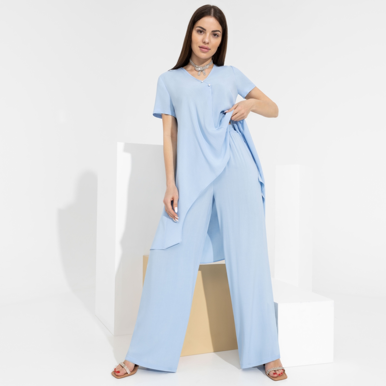 В твоем весеннем списке желаний точно есть брючный костюм. И ещё какой: оригинальный, женственный, свободный, из воздушного, легкого штапеля. Для тех, кто понял жизнь и никуда не спешит.