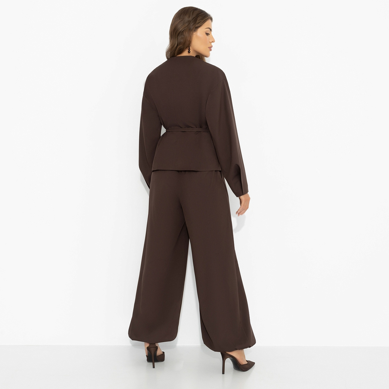 Кофе выпит, чашка перевёрнута, пальцы скользят по тёплому фарфору – на кофейной гуще уже проступают линии судьбы. Кто-то видит в них дорогу, кто-то – долгожданную встречу. Ты просто улыбаешься, ведь уже знаешь, как всё будет. Шоколадный оттенок звучит как восточная притча – густо, глубоко, с обещанием тайного поворота. Комплект в восточном стиле дарит комфорт и живое движение. Образ для тех, кто чувствует своё предназначение.