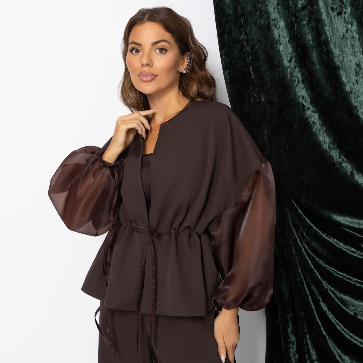 Утонуть, затеряться в этом тягучем, манящем, роскошно-шоколадном оттенке очень легко... Костюм ЧАРУТТИ идеален и для камерного вечера у камина, и для новогодней вечеринки в большом кругу коллег. Комплект состоит из расслабленного жакета и свободных прямых брюк, выполненных из гладкой костюмной ткани «барби» с приятной текстурой. Легкий блеск подчеркивает благородство глубокого коричневого ‒ тот самый оттенок брауни, в котором хочется раствориться. Регулируемая кулиска на талии позволяет варьировать посадку: стройное силуэт либо расслабленный оверсайз.