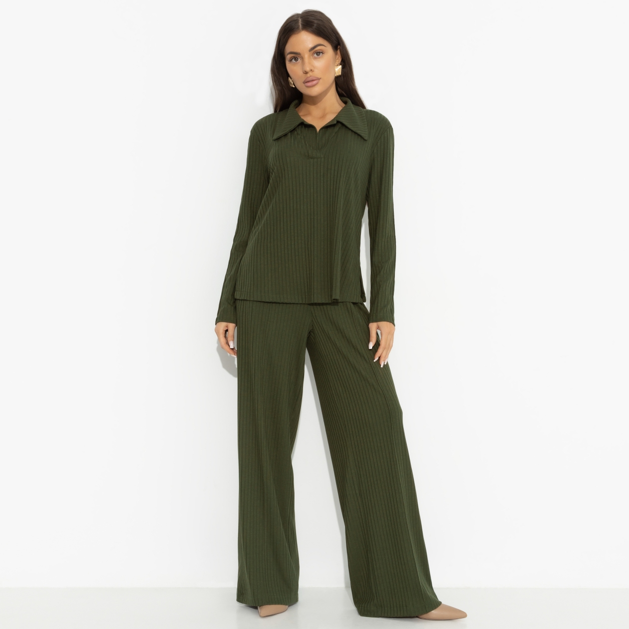 В чем её секрет? Она точно знает, как одеваться стильно, комфортно и всегда уместно. Модная тайна зашита в костюме CHARUTTI. В загадочном и глубоком зеленом цвете он станет палочкой-выручалочкой на все времена и случаи. Комплект состоит из брюк свободного кроя и поло прямого силуэта. Материал фактурный. Поло хорошо смотрится в заправленном виде и навыпуск. Брюки с карманами. Пояс брюк на скрытой резинке.