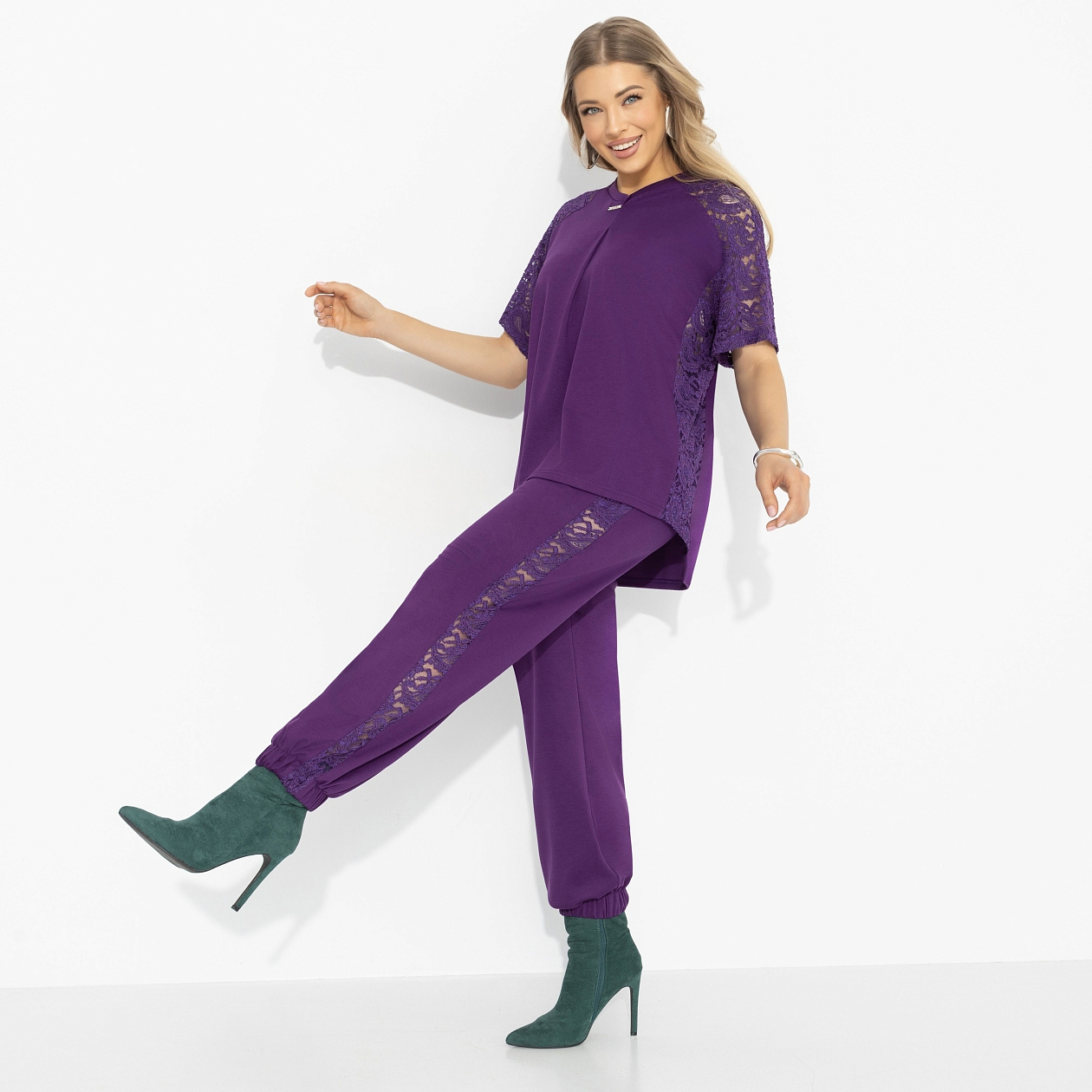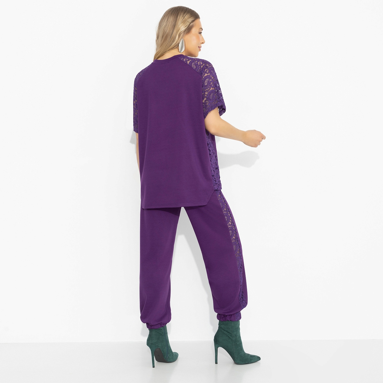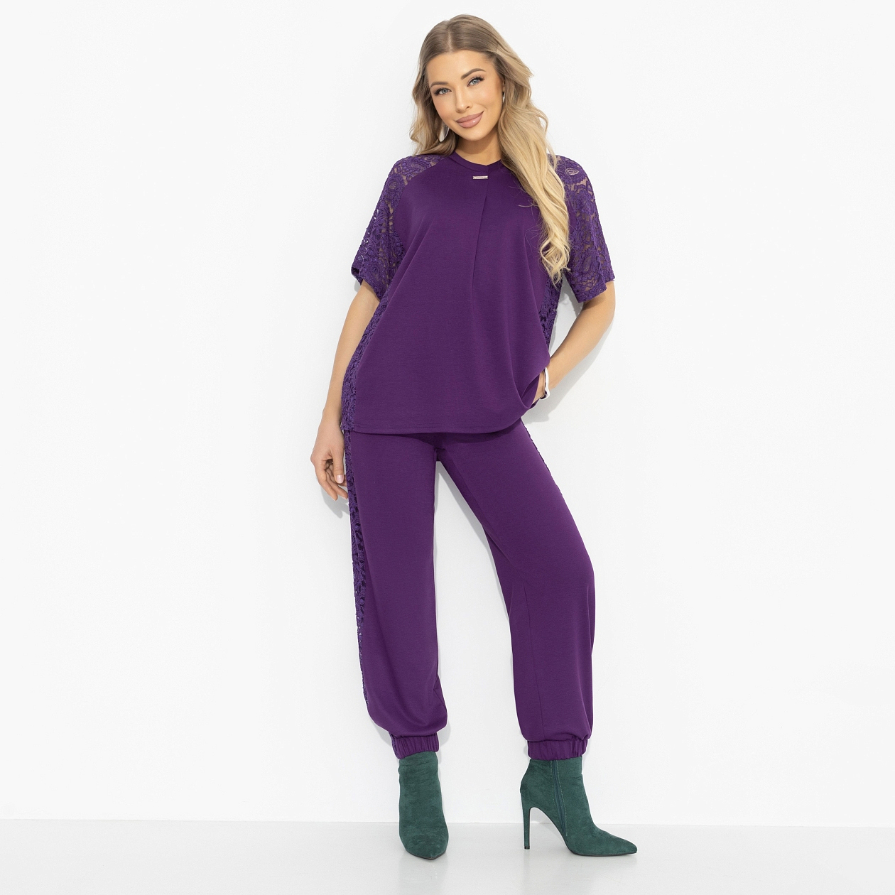 Тебе важно, чтобы стиль работал вместе с тобой? Не мешал, а помогал? Комплект от ЧАРУТТИ становится тем самым идеальным штрихом, который легко подстраивается под задачи и настроение, оставаясь выразительным всегда. Глубокий фиолетовый не утяжеляет образ и освежает привычные сочетания. Функциональность здесь – в продуманной простоте: мягкий трикотаж держит форму и сохраняет комфорт в течение дня. Свободный крой обеспечивает свободу шага и лёгкость сочетаний.