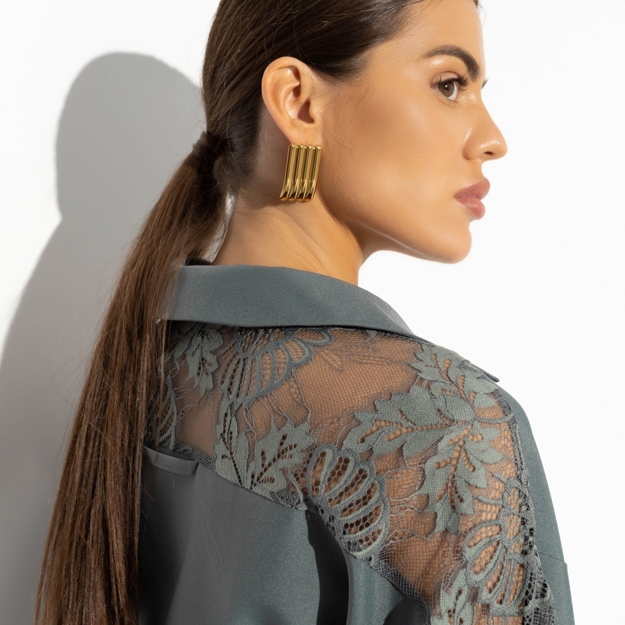 Работать в креативном режиме – это запускать самые крутые коллаборации. Например, службы такси с кондитерской фабрикой. В машинах всегда будут конфетки. При этом вы – самая лучшая демонстрация стиля. Конечно, в костюме CHARUTTI. В составе костюма брюки свободного кроя и жакет с поясом. Рукава жакета на резинке, дополнены линией кружева. Боковая часть брюк оформлена кружевом.