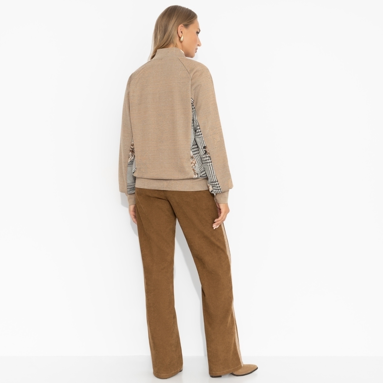 Костюм ЧАРУТТИ — ваш безупречный спутник для полета в бизнес-классе в солнечную Италию. Элегантные брюки из благородного вельвета и бомбер создают образ, который говорит о вашем статусе еще до посадки в самолет. Образ, в котором вы будете чувствовать себя комфортно во время долгого перелета и при этом безупречно выглядеть при выходе из аэропорта. Сойдите с трапа готовой к деловым встречам или прогулкам по римским улочкам. Комплект состоит из брюк прямого кроя и бомбера с карманами. Брюки с акцентными лампасами на резинке, есть карманы. Посадка высокая на талии.