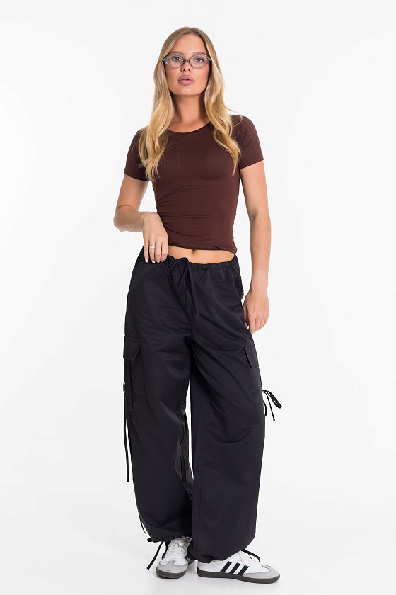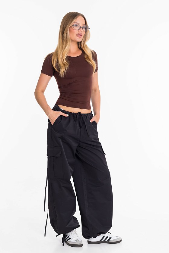 Женские брюки-карго из плащевой ткани сочетают в себе практичность и современный стиль. Модель свободного кроя с регулируемым поясом на шнуре обеспечивает удобную посадку и не сковывает движений. Прочное и легкое плащевое полотно дарит комфорт в течение всего дня, а функциональный дизайн с множеством карманов и стильными затяжками позволяет легко сочетать брюки как с объемными худи и кроссовками, так и с облегающими топами и кедами. Отличный вариант для повседневных уличных образов.