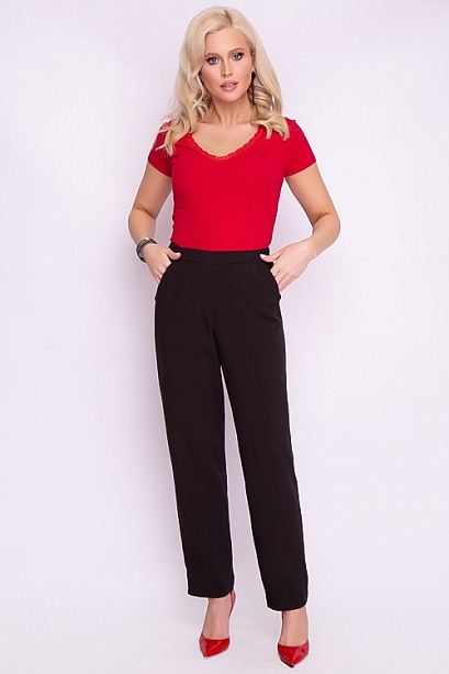 Брюки из легкой костюмной ткани крепового переплетения свободного кроя с функциональными карманами в боковых швах и имитацией гульфика,пояс на резине.