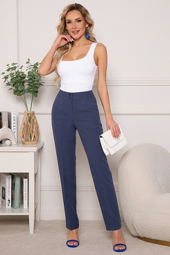 Брюки из костюмной ткани зауженные к низу со средней посадкой по талии,в боковых швах расположены функциональные карманы с отрезным бочком.Брюки на притачном поясе с застежкой на две пуговицы,по центру застежка гульфик-молния,по всей длине заутюжены стрелки.
